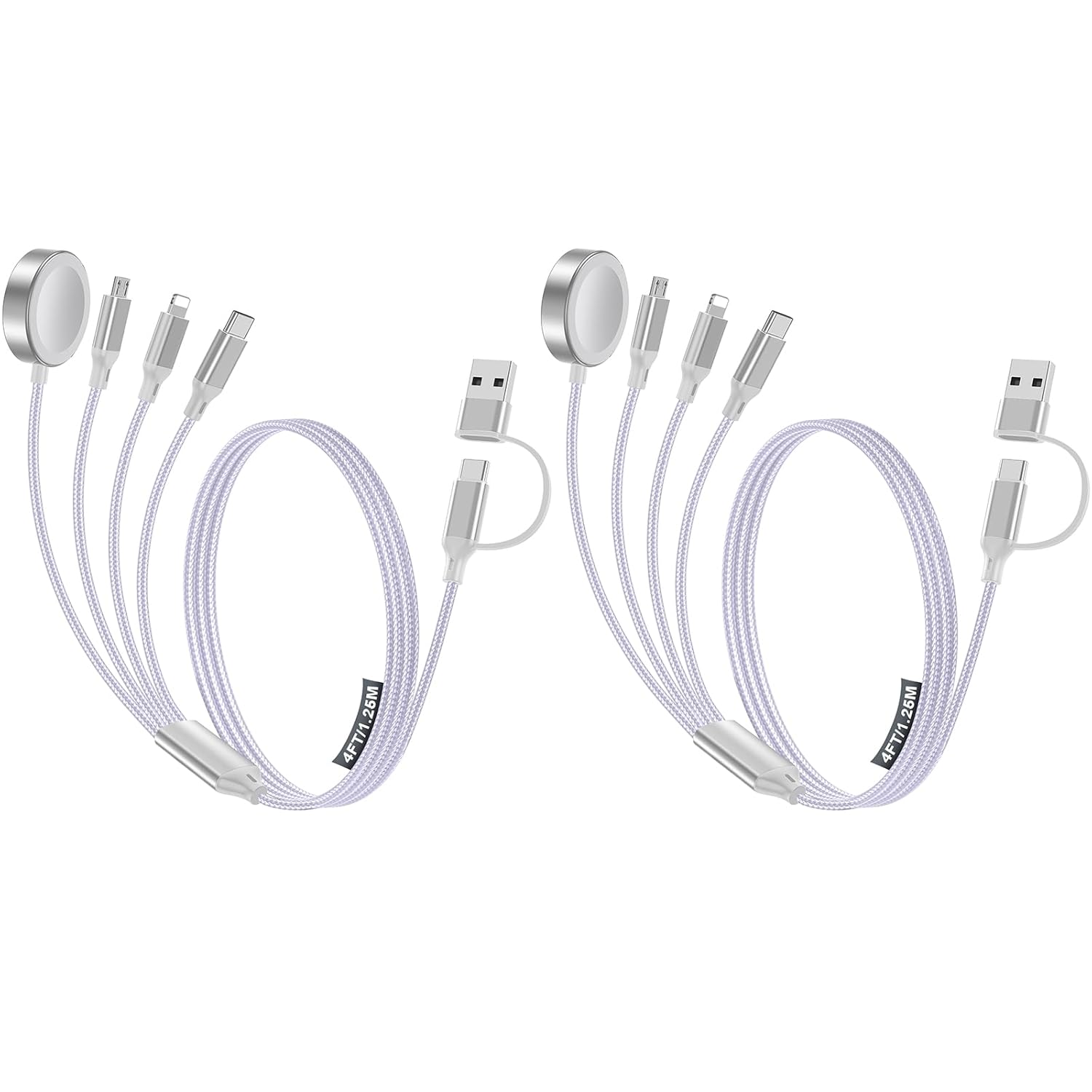 - 【4-in-2 Charger for Multiple Devices】This 4-in-2 charging cable is equipped with Type C/USB A input port and four output ports compatible with Type-C, Ligntning, Micro and iWatch respectively. This multi-function charging cable is compatible with Type C and USB A chargers, which is a universal choice for various devices and a travel essential for personal travel. One Charging cable is enough for all your devices to charging, and it is also suitable for PS4 charger.