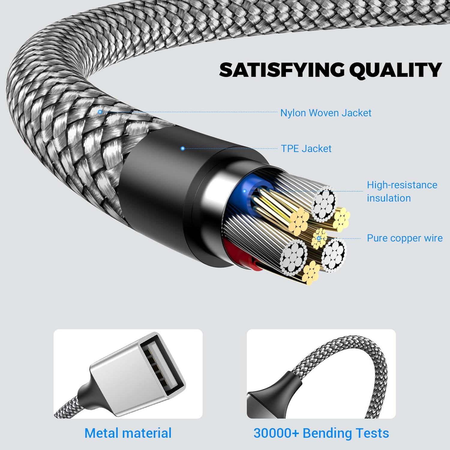 - USB A Male to 3 Female Extension Cable made with sleek aluminum shell and nylon braided jacket to withstand daily twists and pulls. The flexible and wear-resistant armor nylon braided material offers stronger protection.