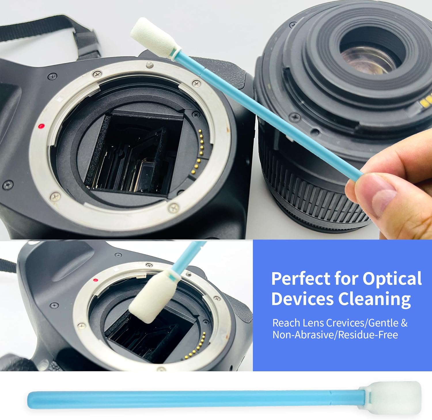 - Lens Equipment Cleaning: Made of cleanroom grade polyester fiber, hot melt bonding process, no glue, more suitable for precision cleaning than ordinary cotton swabs. dust-free foam material, no lint, no marks, lint free swabs gently wipe camera lenses, sensors, microscope lenses and other precision optical equipment, microfiber swabs clean fingerprints, dust and oil, keep the image clear.