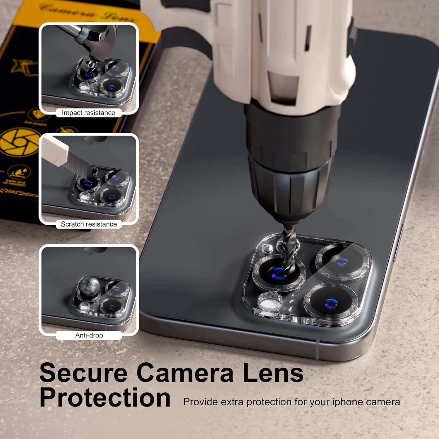- Perfect Photography: The 9H sapphire tempered glass material is made of anti reflective film, with 99.99% light transmission, which allow you take flawless clear vivid photo with no glare. The 15 pro max / pro camera protector restores the amazing photo quality, giving you a pleasant shooting experience