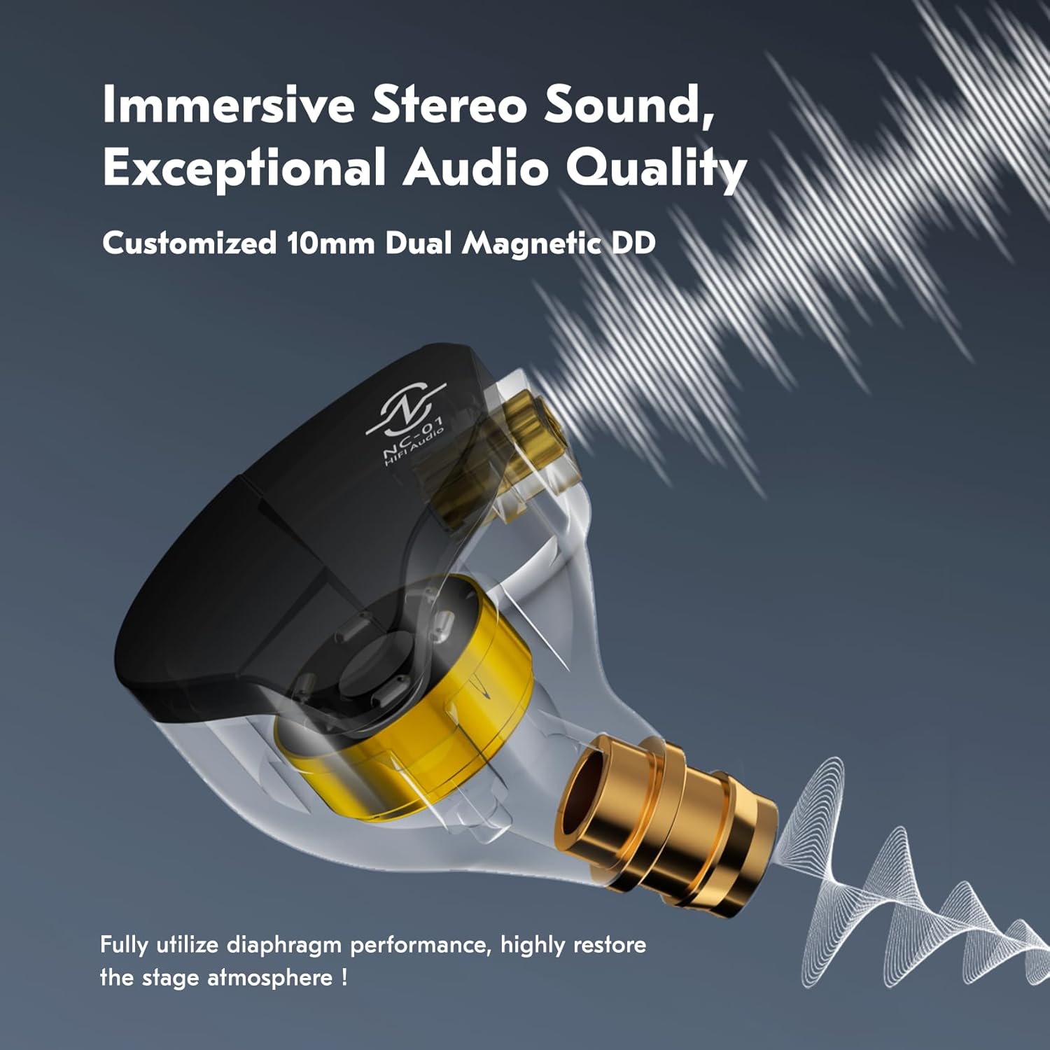 - 【High Performance PET Diaphragm, Immersive Stereo Sound】 CCZ NC01 in ear monitors with customized 10mm dual magnetic DD, fully utilize diaphragm performance, highly restore the stage atmosphere! Detailed Highs, Dynamic & Balance, Natural Immersion, Clear highs meet punchy mids-bass in an open, engaging soundscape—perfect for dynamic tracks