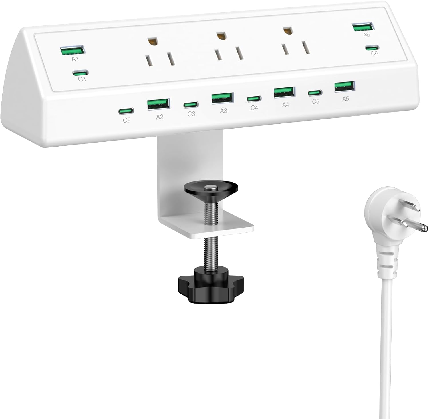 - Versatile for Any Room & Setup:More than just a desk organizer! The flexible clamp easily attaches to nightstands, workbenches, kitchen counters, or standing desks. It’s the perfect solution for bedroom charging without cable clutter, a tidy workshop setup, or adding power anywhere an outlet is out of reach.