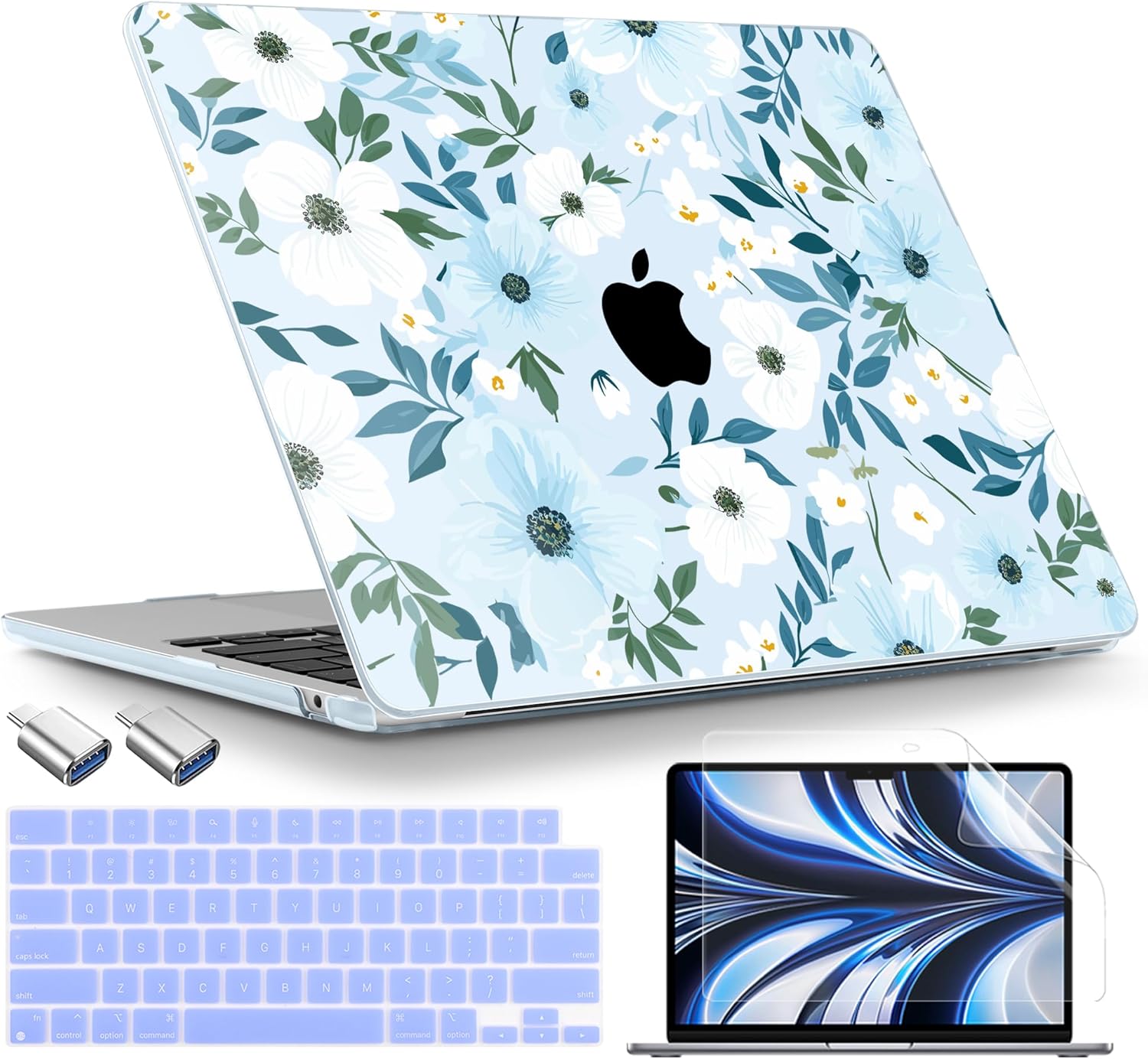 TWOLSKOO Compatible with M4 MacBook Air 13.6 inch Case 2025-2022 Release M4 A3240 M3 A3113 M2 A2681, Plastic Hard Shell & Keyboard Cover & Type C Adapter & Screen Protector, Floral Field Seamless