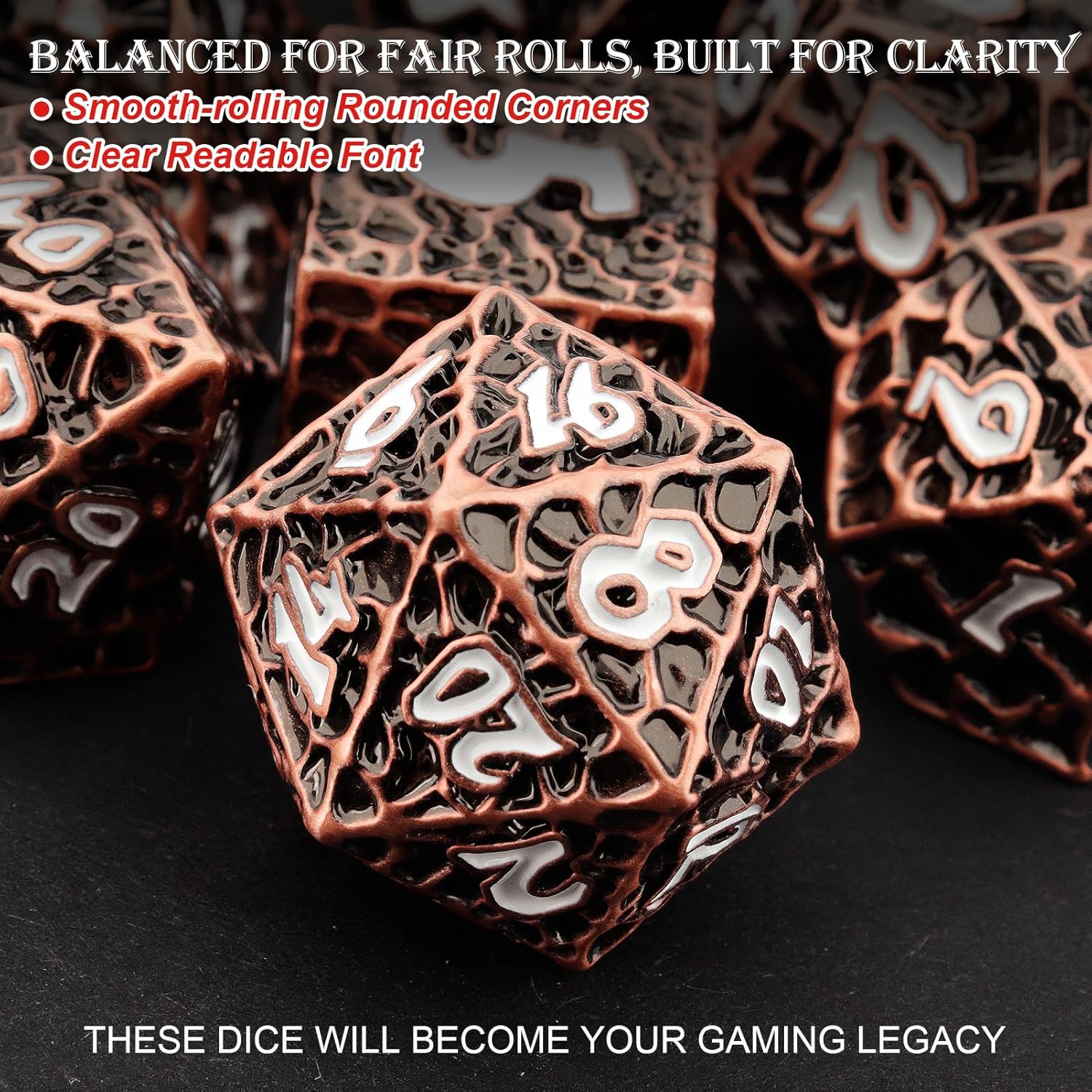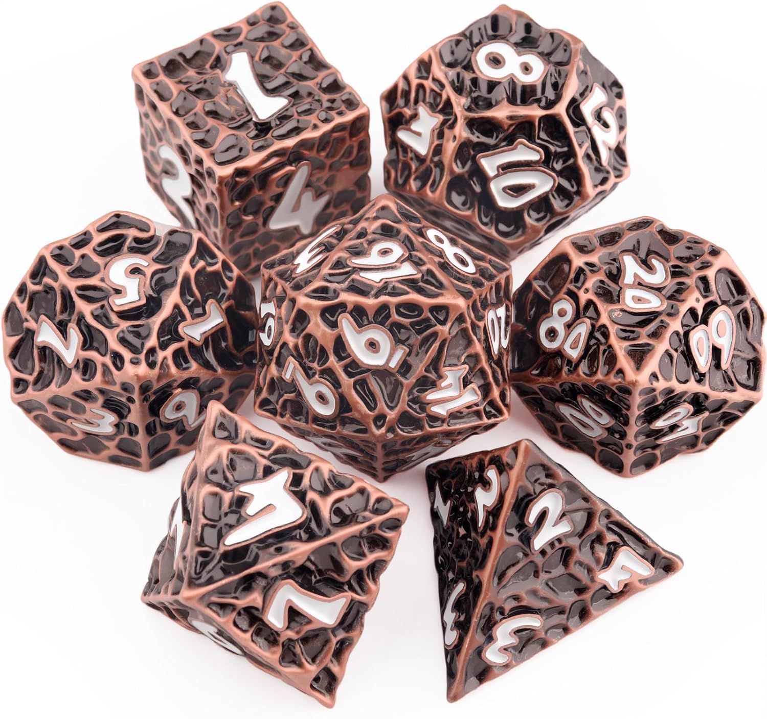 Haxtec Metal DND Dice Set Polyhedral D&D Dice Compatible with Dungeons and Dragons Gift TTRPG Antique Copper Metal Dice