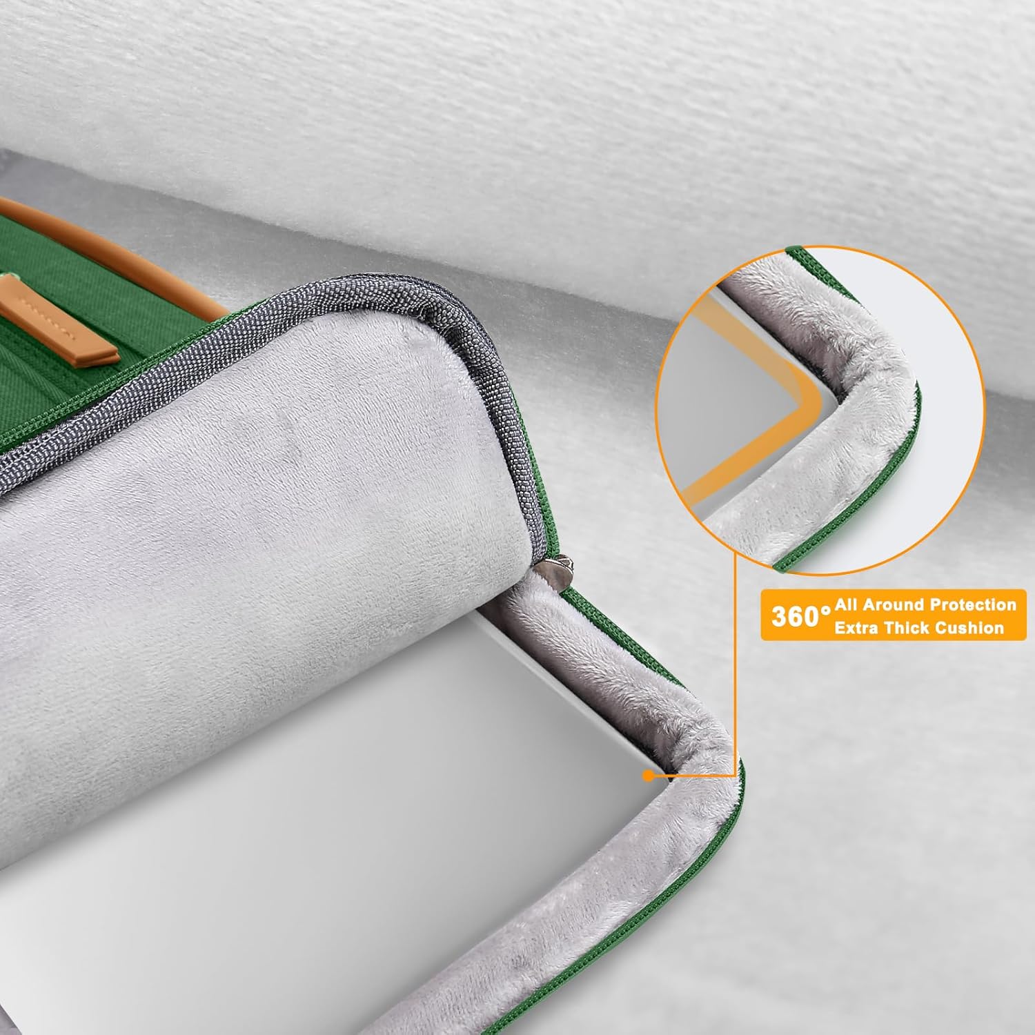 MOSISO 360 Protective Laptop Case 13.3 inch, 13-13.3 inch Laptop Sleeve Compatible with MacBook Air/Pro 13 / Pro 14,HP Dell Acer ASUS,Side Open Carrying Case with 4 Zipper Pockets&Handle,Jungle Green