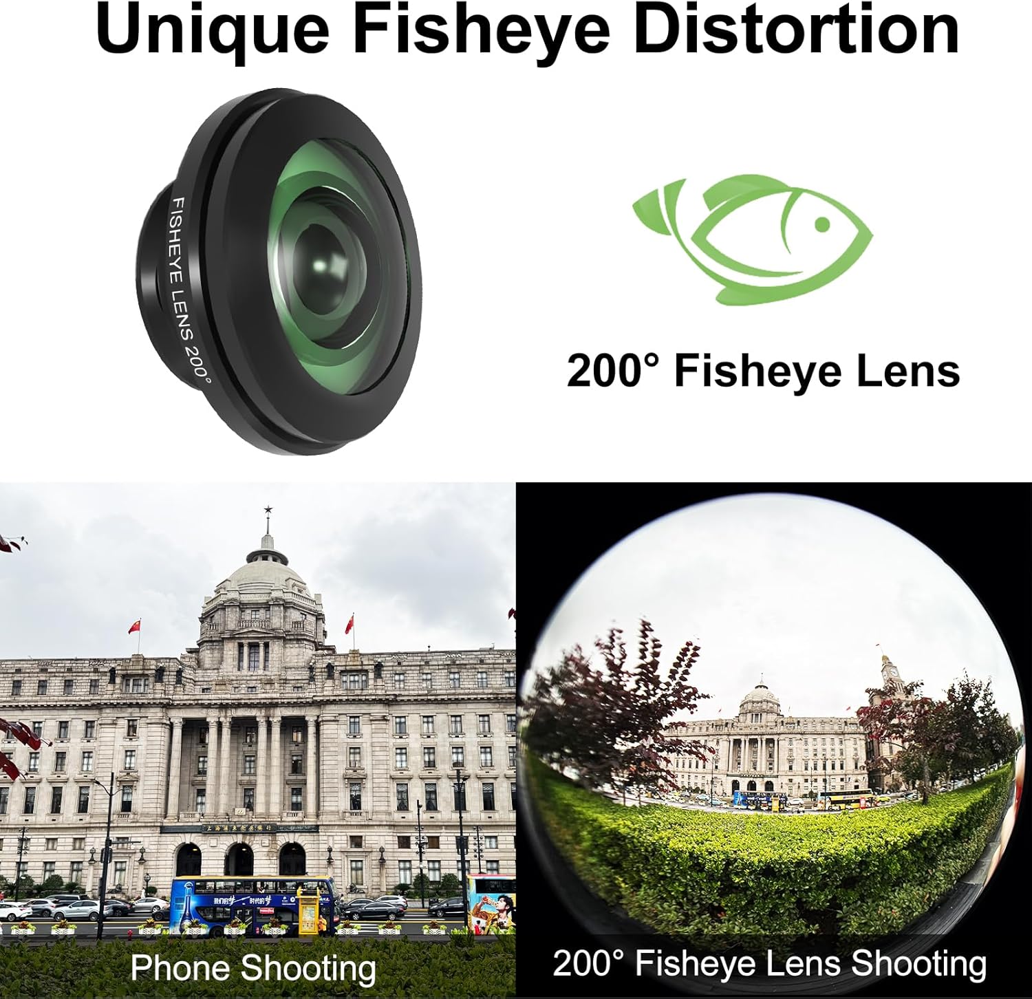 - 【200°Ultra-Wide Fisheye Effect】This lens compatible with most iPhone and Android smartphones, and can achieve 200°ultra wide field of view without app. This high-definition lens minimizes distortion to the greatest extent possible, making it perfect for shooting extreme sports, urban landscapes, and creative close ups.