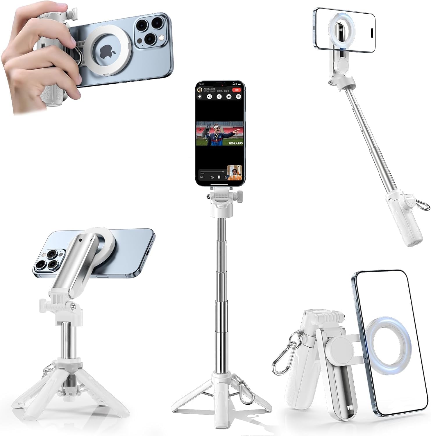 - 【Two Mounting Options for 99% of phones】Supports nearly all smartphones with or without MagSafe. Use magnetic attachment for iPhone 12–16, or the secure clamp for other iOS and Android models. No worries about phone size or compatibility, Enjoy hassle-free switching between styles based on your device or shooting scenario.