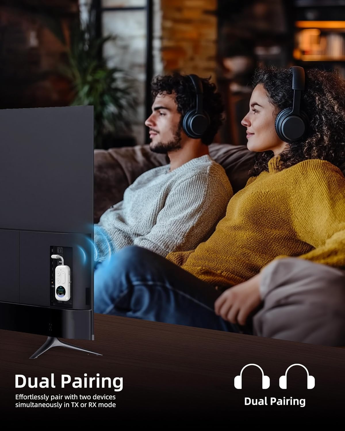 - Smart & Intuitive Controls: Effortlessly manage your headphones with 2 adapters using multi-function buttons for instant pairing. The color LCD displays connected headphones for airplane travel names, battery level, and works as audio transmitter and receiver status monitor, while LED indicators show adapter connectivity.