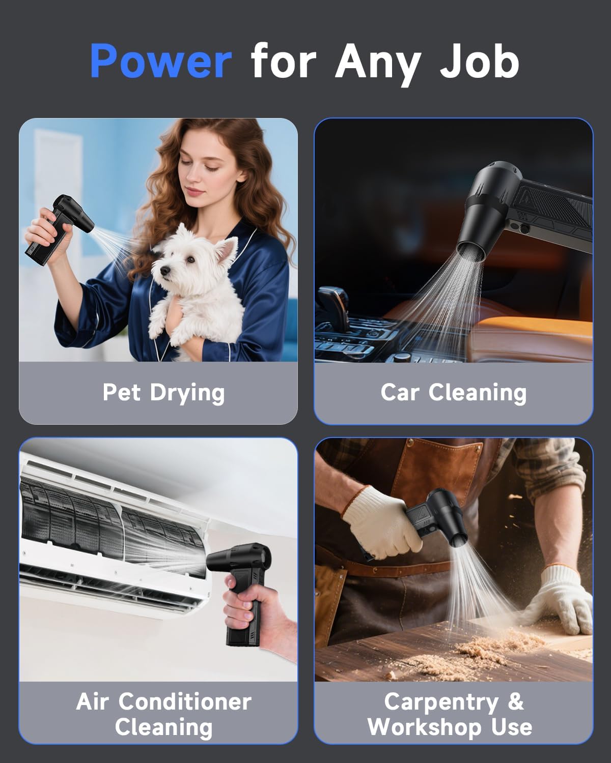 - 【Compact & Portable Design】Weighing only 0.6 lbs, this mini air blower is ergonomically designed for one-handed use and easy portability. Take it anywhere—home, office, car, or travel—and enjoy the cleaning convenience of an air gun blower without bulky equipment.