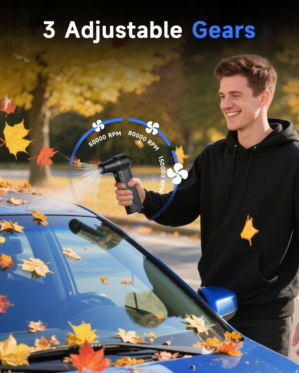 - 【Powerful 3-Speed Suction Adjustment】The electric air duster equipped with a high-performance motor, this air duster offers 3 adjustable suction levels. With a robust speed of up to 15,000 RPM and a maximum airflow of 60 m/s, it delivers the perfect balance of precision and power. From delicate electronics to heavy dust build-up, you can customize the airflow strength for every cleaning scenario.
