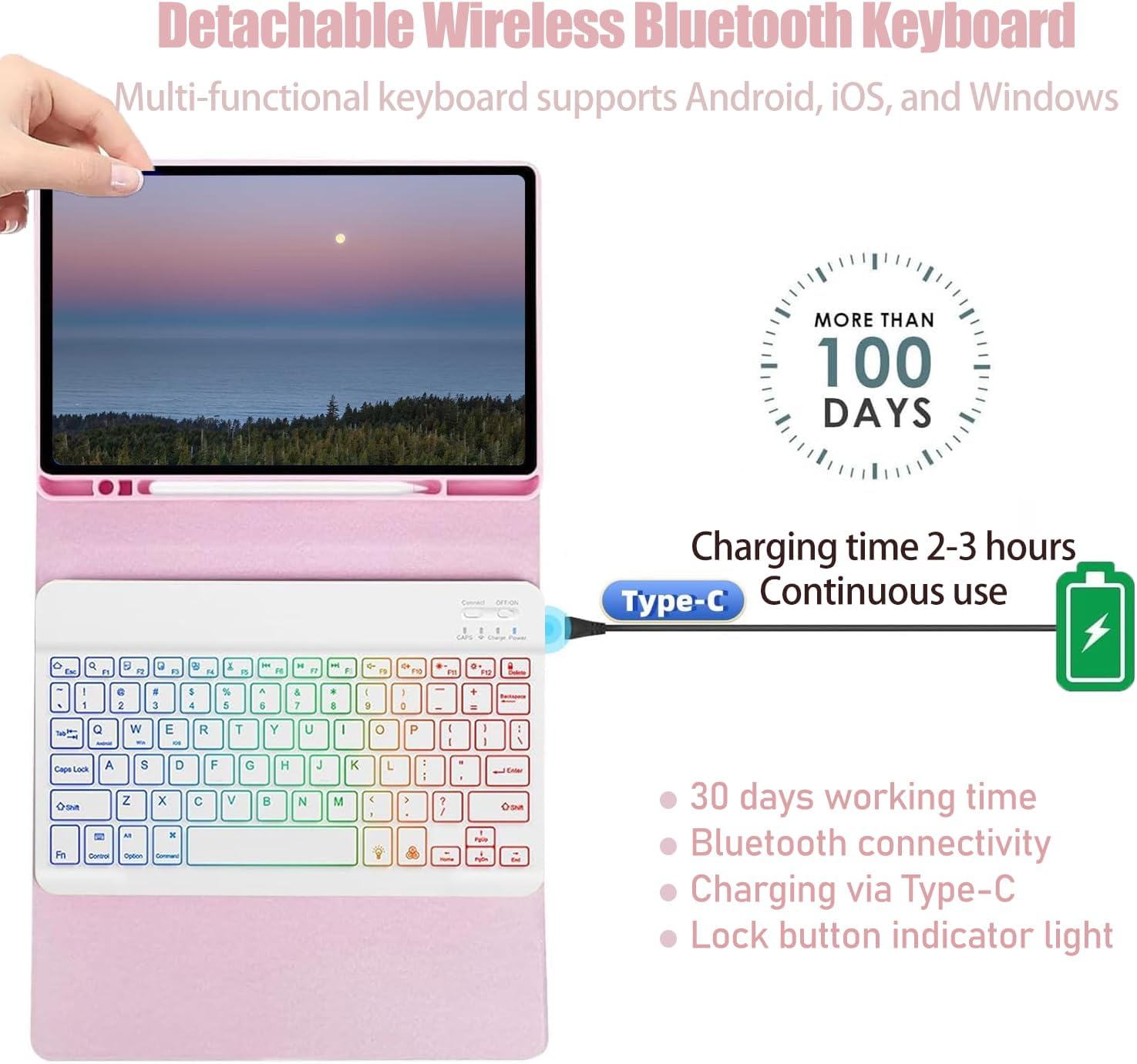 - 【Detachable Keyboard】For Samsung Galaxy Tab S10 FE/S9 FE 10.9-inch/S9/S8/S7 11-inch keyboard detaches effortlessly for on-the-go use, simply sliding out of the protective case. Featuring a scissor-switch mechanism and ultra-quiet keys, it delivers an exceptionally comfortable typing experience.