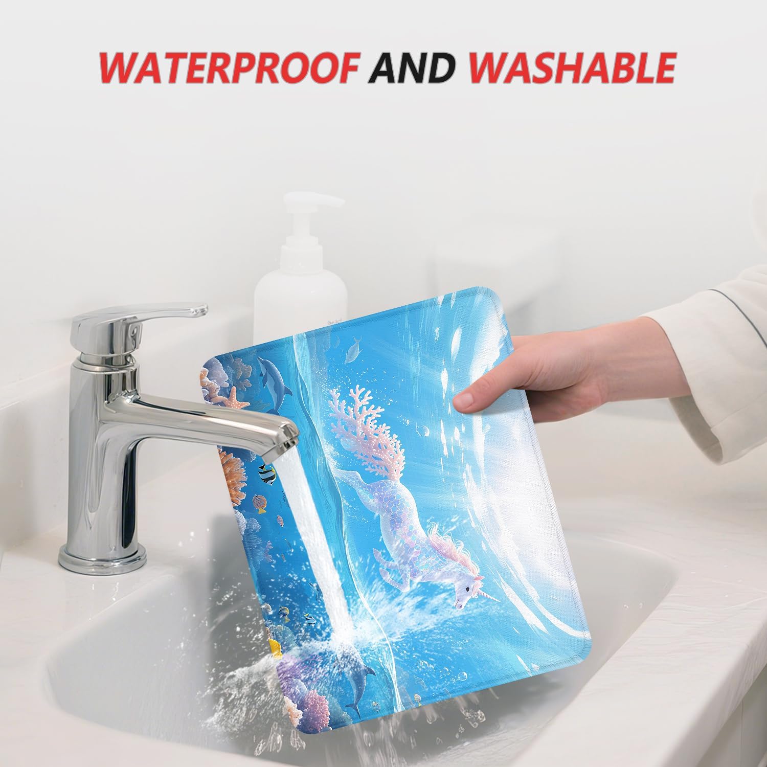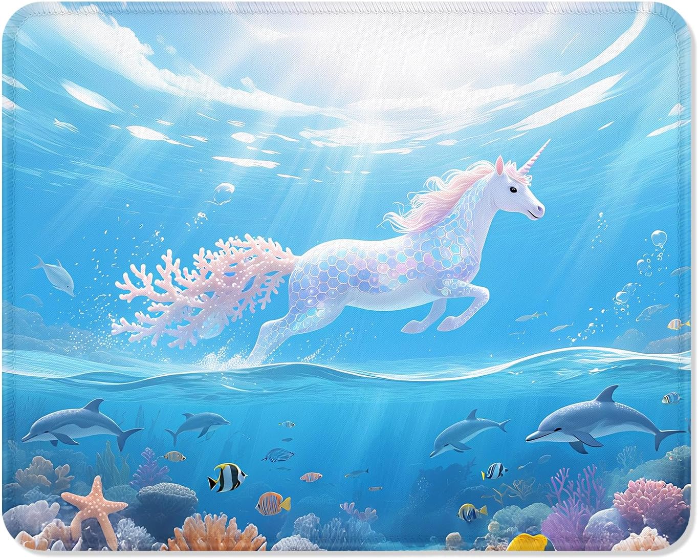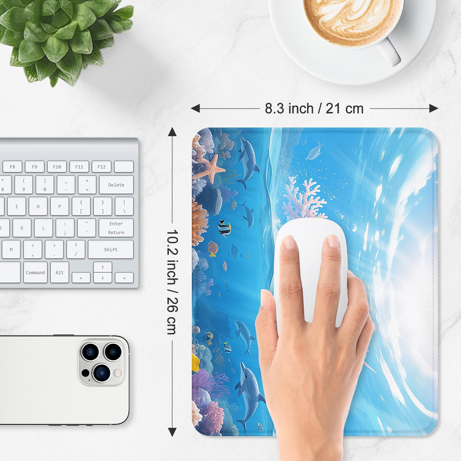 ITNRSIIET Mouse Pad Non-Slip Rubber Base Smooth Surface Stitched Edges Waterproof Durable Compatible with All Mice for Office & Gaming, Desk Accessory, 10.2x8.3x0.12 inch, Ocean