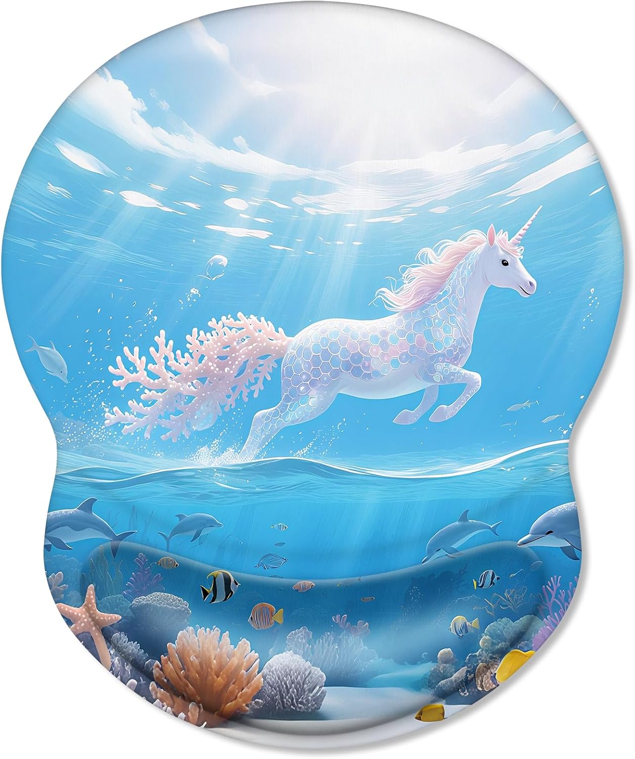 ITNRSIIET Ergonomic Mouse Pad with Comfort Gel Wrist Rest, Non-Slip PU Base, Smooth Textured Surface, Reduces Hand Fatigue & Wrist Pain, 8.7 x 7.2 Inch for Office Gaming Home, Ocean