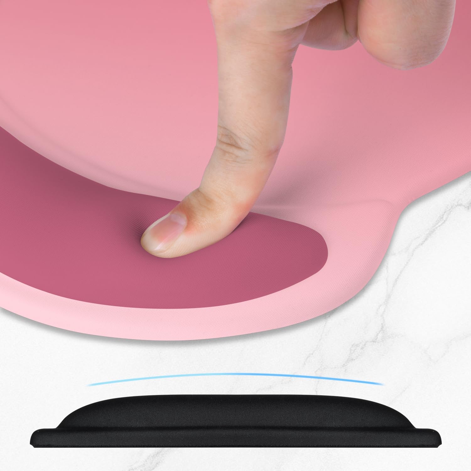 ITNRSIIET Ergonomic Mouse Pad with Comfort Gel Wrist Rest, Non-Slip PU Base, Smooth Textured Surface, Reduces Hand Fatigue & Wrist Pain, 8.7 x 7.2 Inch for Office Gaming Home, Pink Ombre