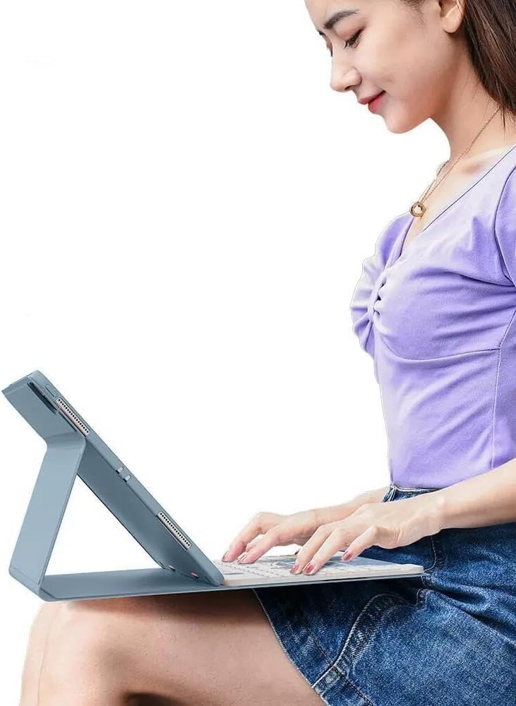 - 【Rechargeable Magnetically Detachable Keyboard】 This case with rechargeable keyboard, The keyboard is magnetic, so it can be easily adjusted in position or removed from the protective case. The keyboard is equipped with shortcut keys and is compatible with IOS, Windows, and Android systems. The keyboard can be used with various tablets.