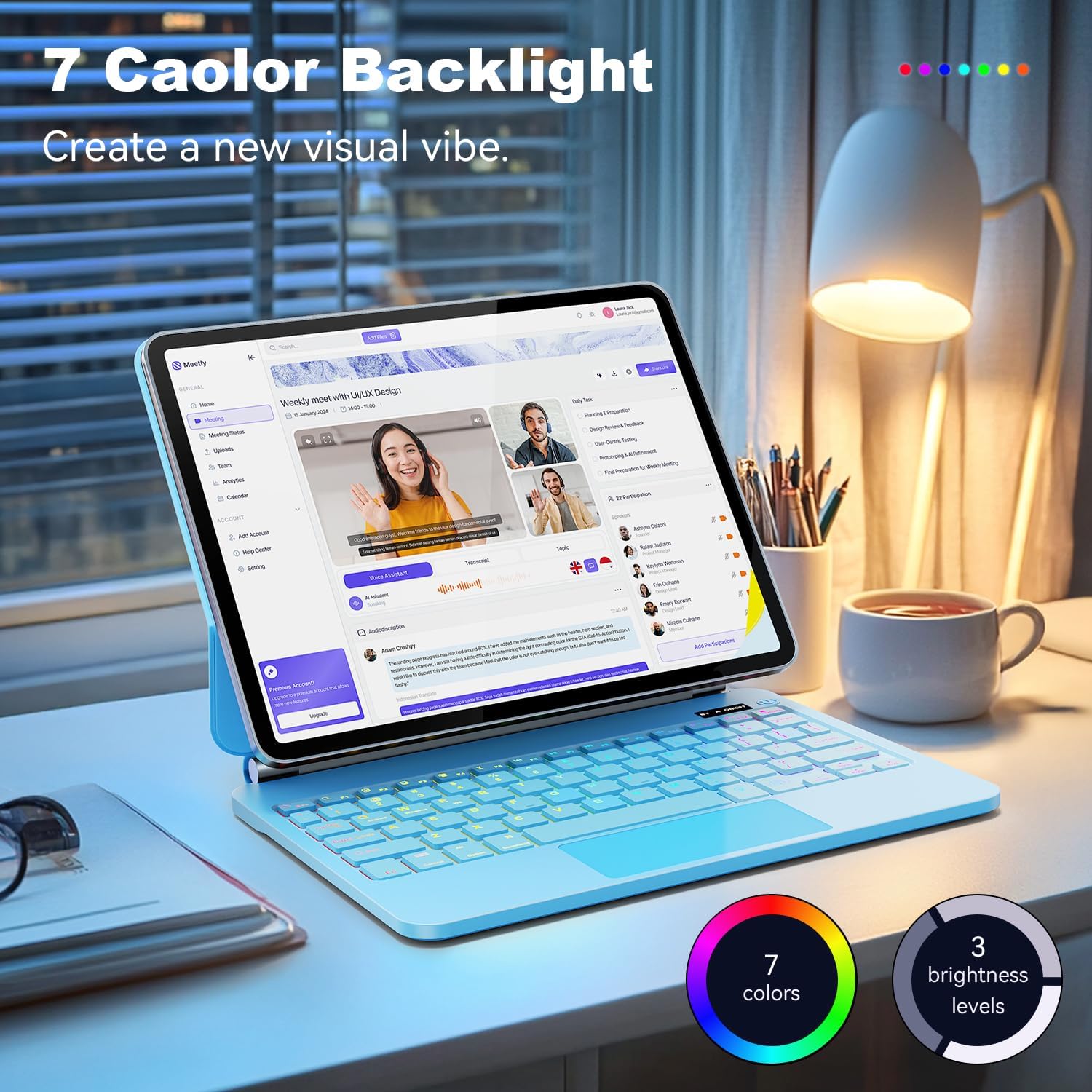 - Backlit Keyboard for iPad Air 13 inch and iPad Pro 12.9: From dawn to dusk, adapt effortlessly! Adjusting 7 backlight and 3 levels of brightness ensures clear visuals in every setting, enhancing your immersive experience. This feature not only adds a touch of style but also makes typing in low-light conditions more comfortable.