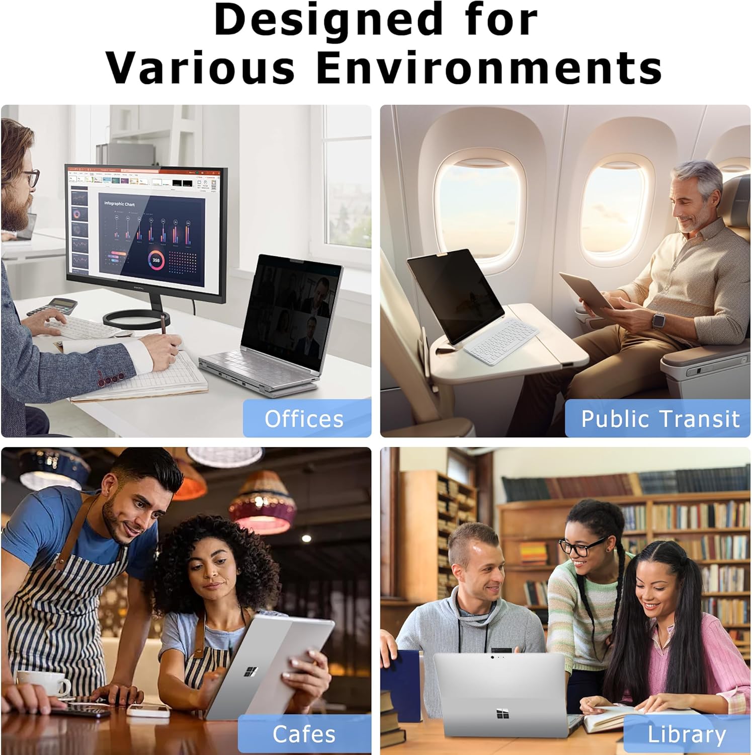 - 【Built for Surface Pro 12 – Snap-On Magnetic Privacy】Designed exclusively for Surface Pro 12 inch (2025), this privacy screen attaches instantly with a magnetic frame and nano adhesive support. Perfect for travel, shared workspaces, meetings, or classrooms—protecting your screen from unwanted side glances.