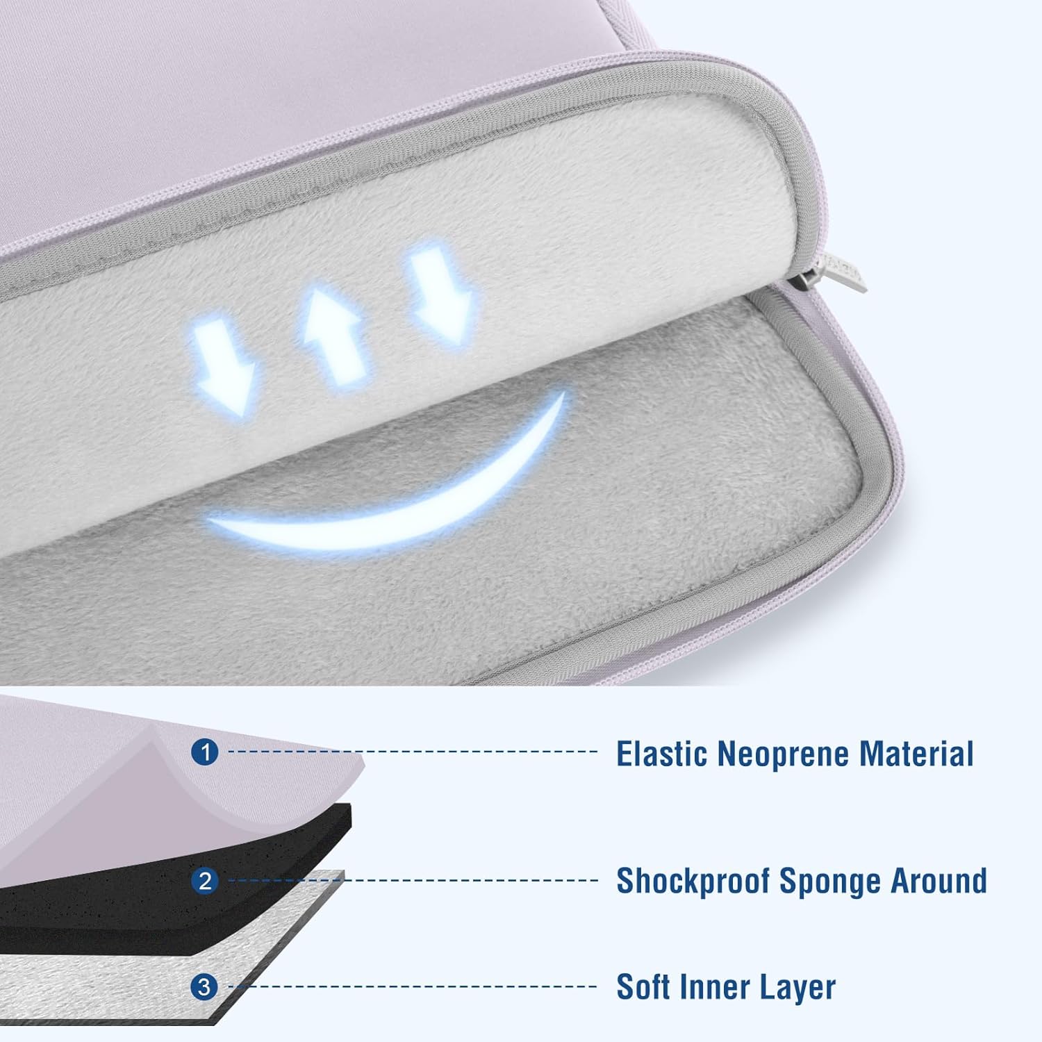 - Features a neoprene foam padding layer and fluffy fleece fabric lining for bump and shock absorption and protection of your computer from accidental scratches.