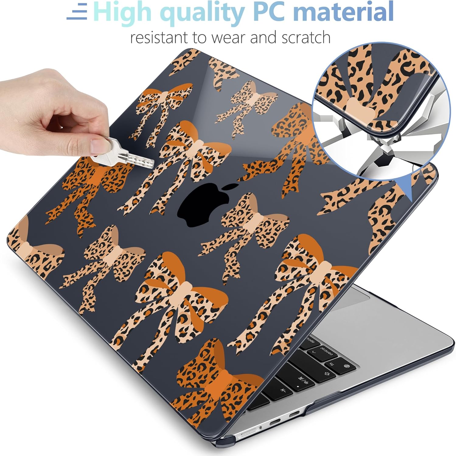 MEEgoodo Case for MacBook Air M4/M3/M2 13.6 inch 2025 2024 2022, Fit Model A3240 A3113 A2681, Compatible with MacBook Air 13 inch, Laptop Hard Shell with Keyboard Cover, Ribbon Bow with Leopard Skin