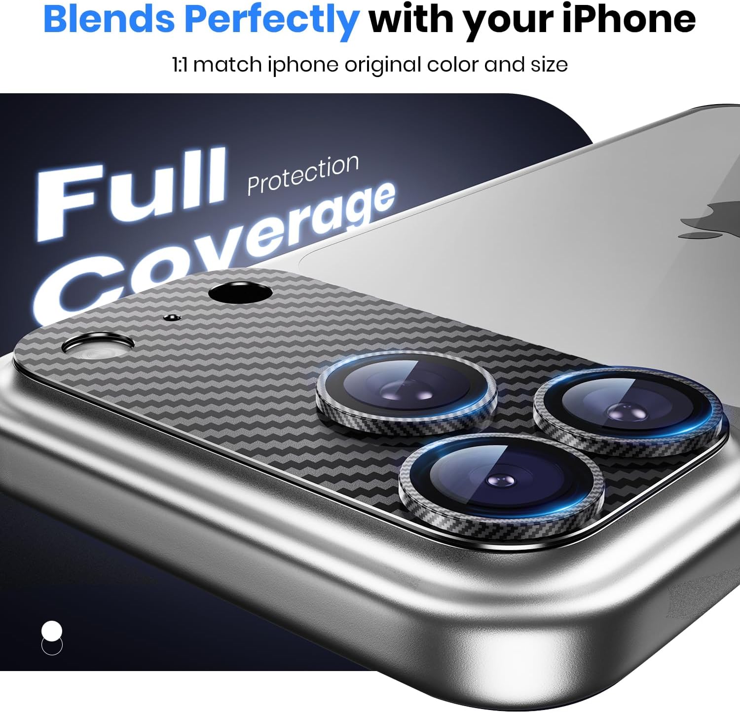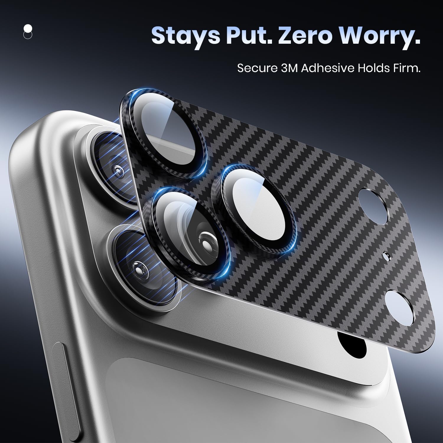Hoerrye for iPhone 17 Pro Max Camera Lens Protector - [12FT Shatterproof Military Grade] [Strong Adsorption] Metal 9H+ Tempered Glass Camera Screen Full Cover Case Friendly,Carbon Fiber