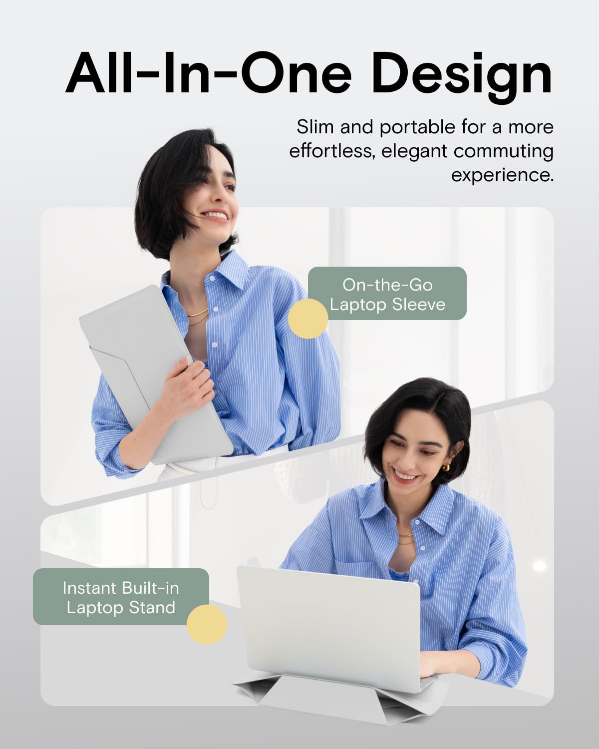 MOFT Laptop Carry Sleeve, 2-in-1 Laptop Bag & Stand for 13" MacBook Air/Pro & Dell/HP/Lenovo/Asus, Stylish Slim Computer Sleeve Bag with Expandable Storage for Computer Accessories, Misty Cove