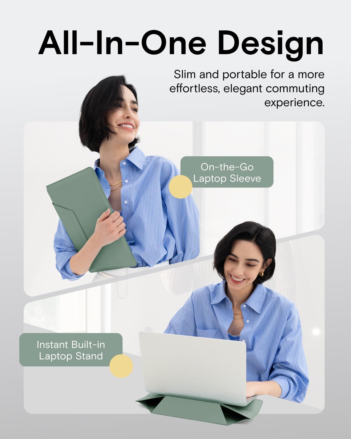 MOFT Laptop Carry Sleeve, 2-in-1 Laptop Bag & Stand for 13" MacBook Air/Pro & Dell/HP/Lenovo/Asus, Stylish Slim Computer Sleeve Bag with Expandable Storage for Computer Accessories, Seafoam