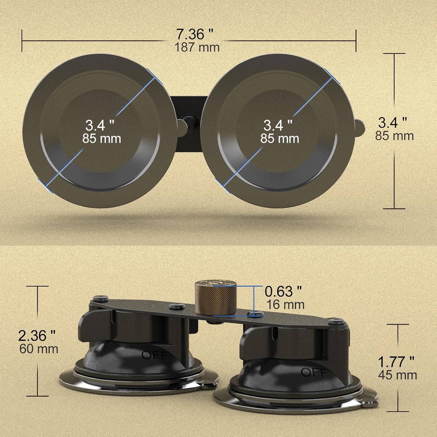 - STRONG SUCTION AND STABILITY: In extremely hot and cold weather conditions, the dual suction cup mount will still be firmly attached to the windshield or windows; It has a strong suction force, which will last for a long time and will not shake during driving, ensuring that your capture stable images
