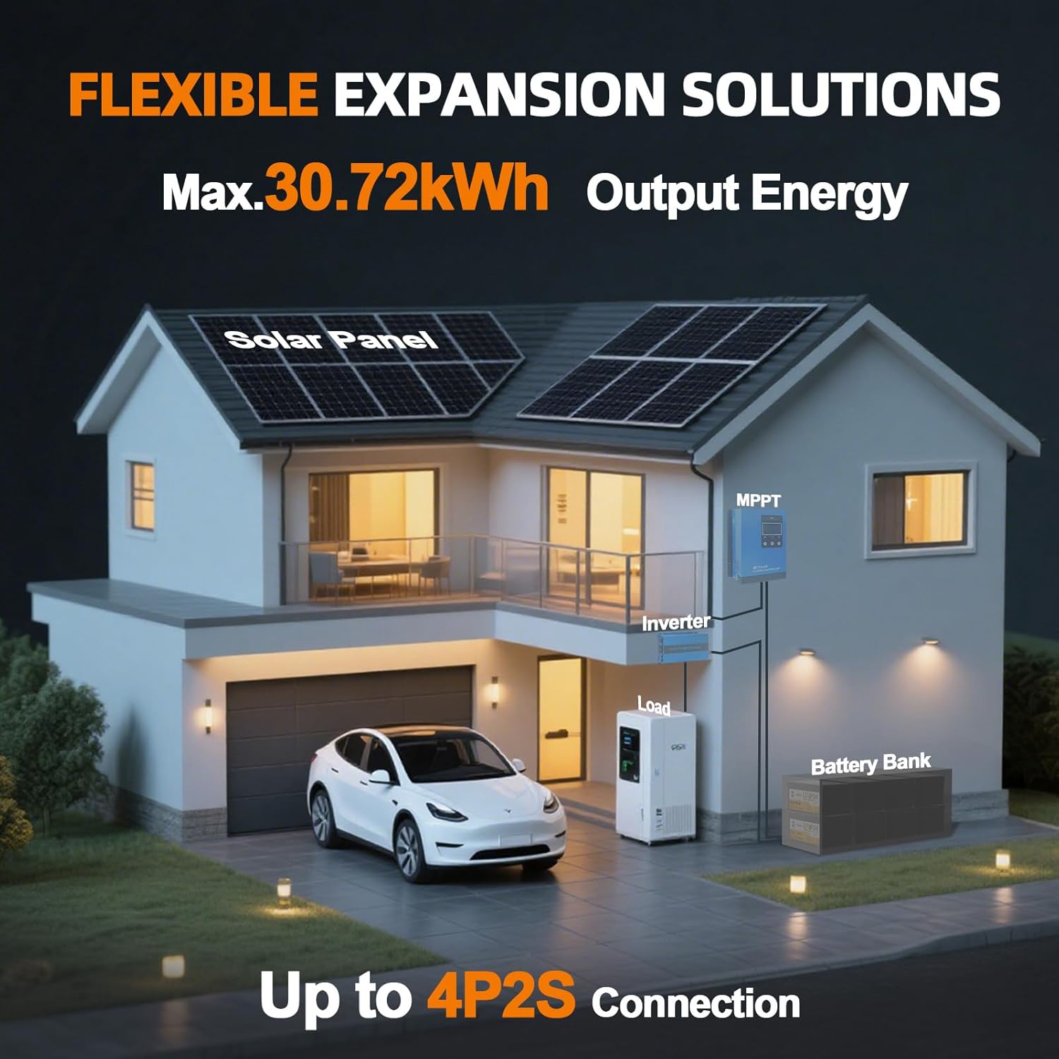 - 【3840Wh Higher Energy】Enhance your power setup with the 36V 100Ah LiFePO4 battery (3840Wh), designed to reduce wiring costs and save space by minimizing amperage compared to 3 *12V 100Ah LiFePO4 batteries (1280Wh). This versatile 36V battery can be connected with up to 2S4P creating a robust 72V (76.8V) 400Ah system with a total energy of 30.72kWh. It serves as the perfect replacement for traditional AGM batteries.