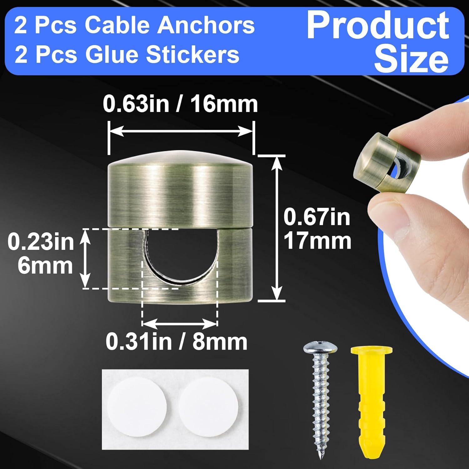 - Easy to Use: The package includes 2 stickers for using. You just need to clean the surface that you are going to attach the cord anchor to, then stick the antique copper cord holder on the surface with glue stickers, and thread the cable from the hole to keep it organized