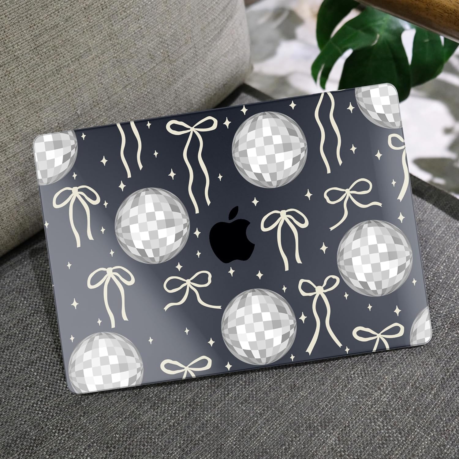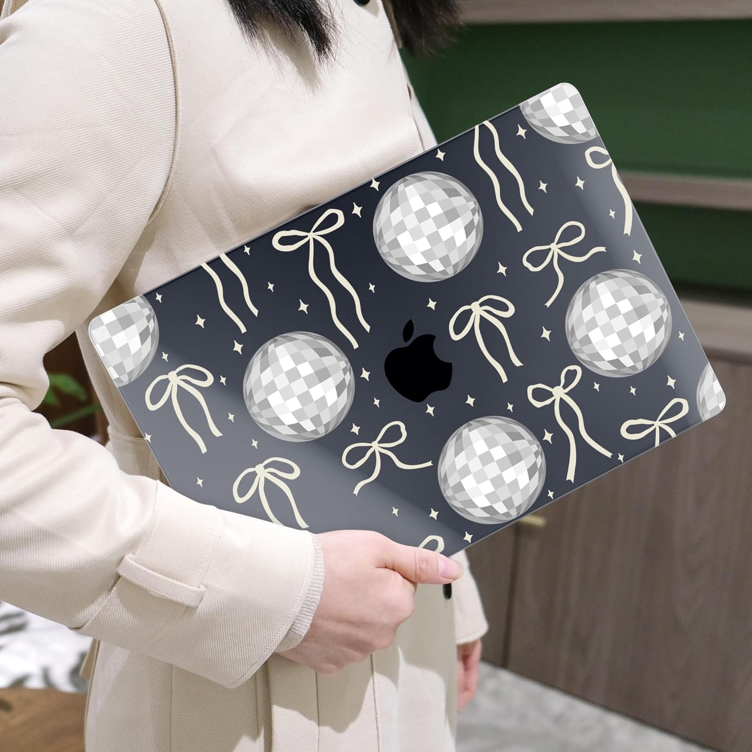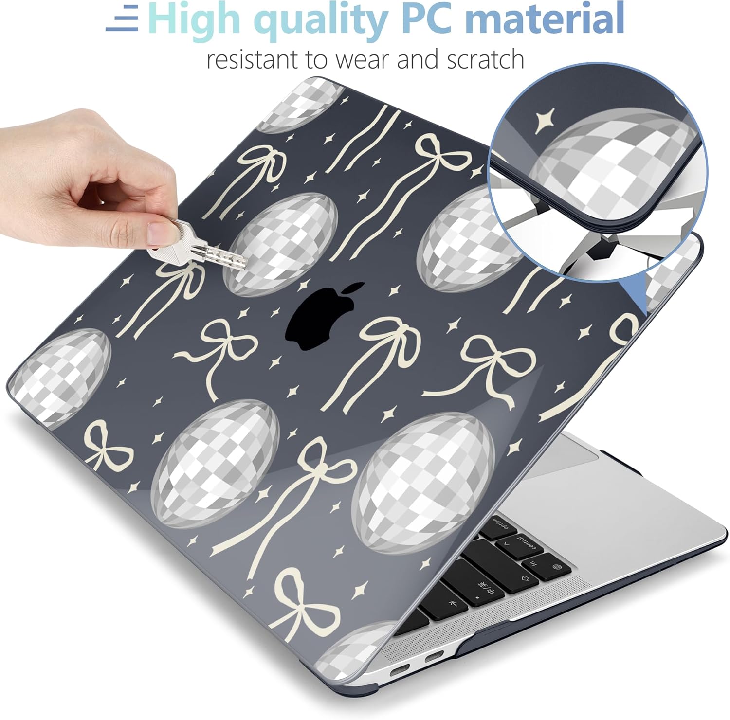 MEEgoodo for MacBook Air 13 inch Case 2021 2020 2019 2018 Released A2337 M1 A2179 A1932 with Touch ID, Plastic Hard Shell & Keyboard Cover Compatible with MacBook Air Case 13.3,Silver Disco Balls&Bows