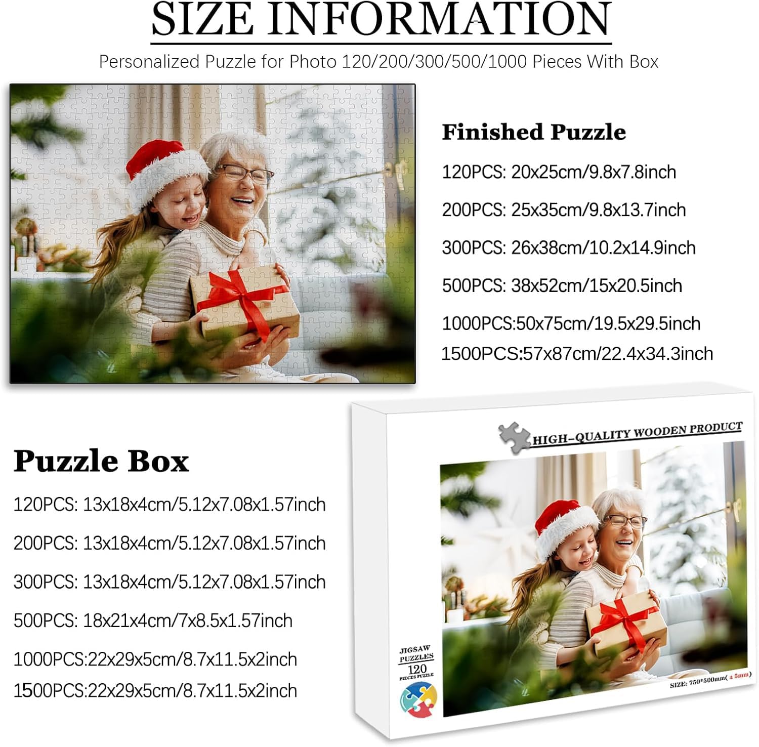 Custom Puzzle 120/200/300/500/1000/1500 Pieces, Personalized Puzzle from Your Own Photos, Customized Picture Jigsaw Puzzle Gift for Christmas Wedding Birthday Family