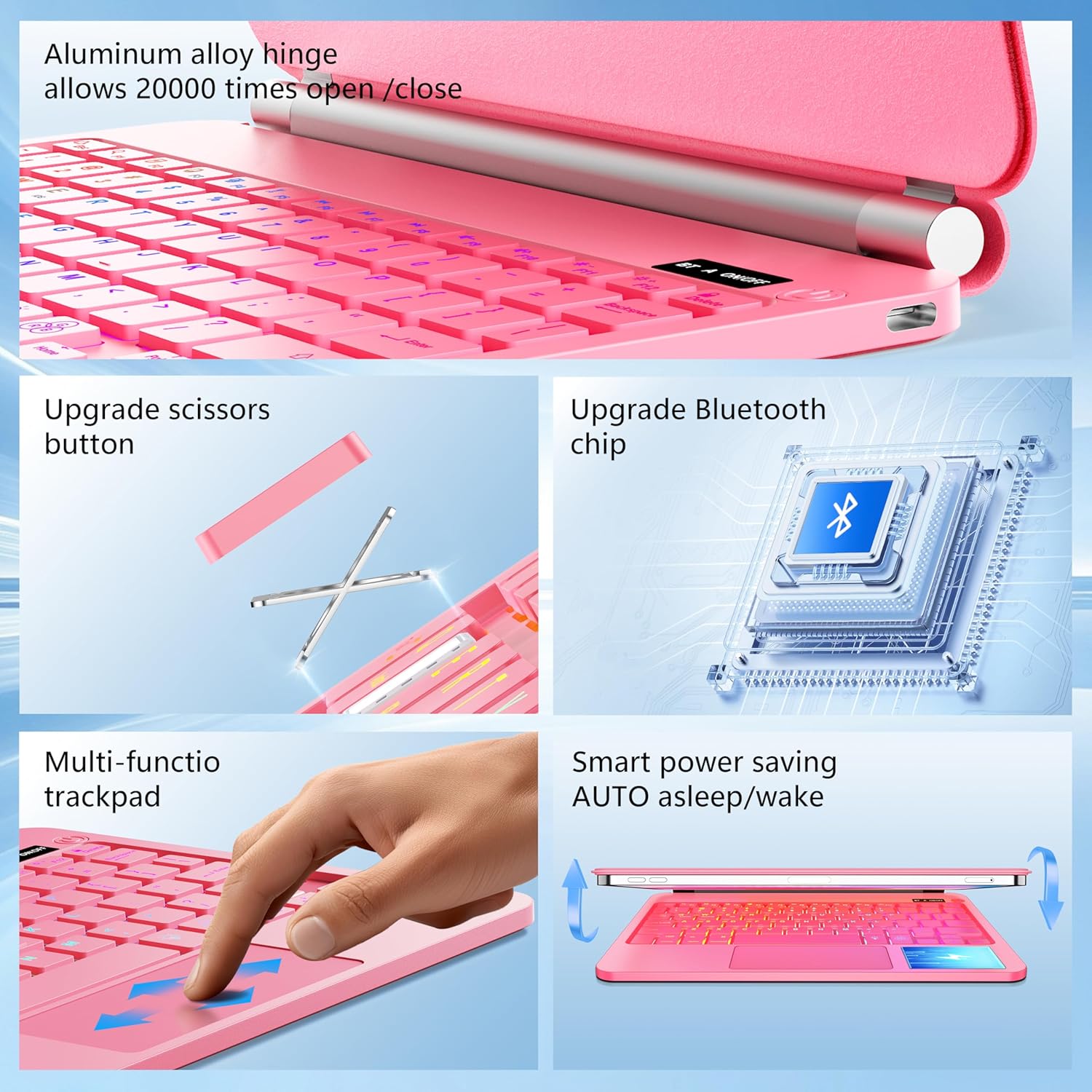 - 7-Color Backlit Keyboard Case for iPad 11th/10th Gen:From dawn to dusk, adapt effortlessly! Adjusting 7 backlight and 3 levels of brightness ensures clear visuals in every setting, enhancing your immersive experience.