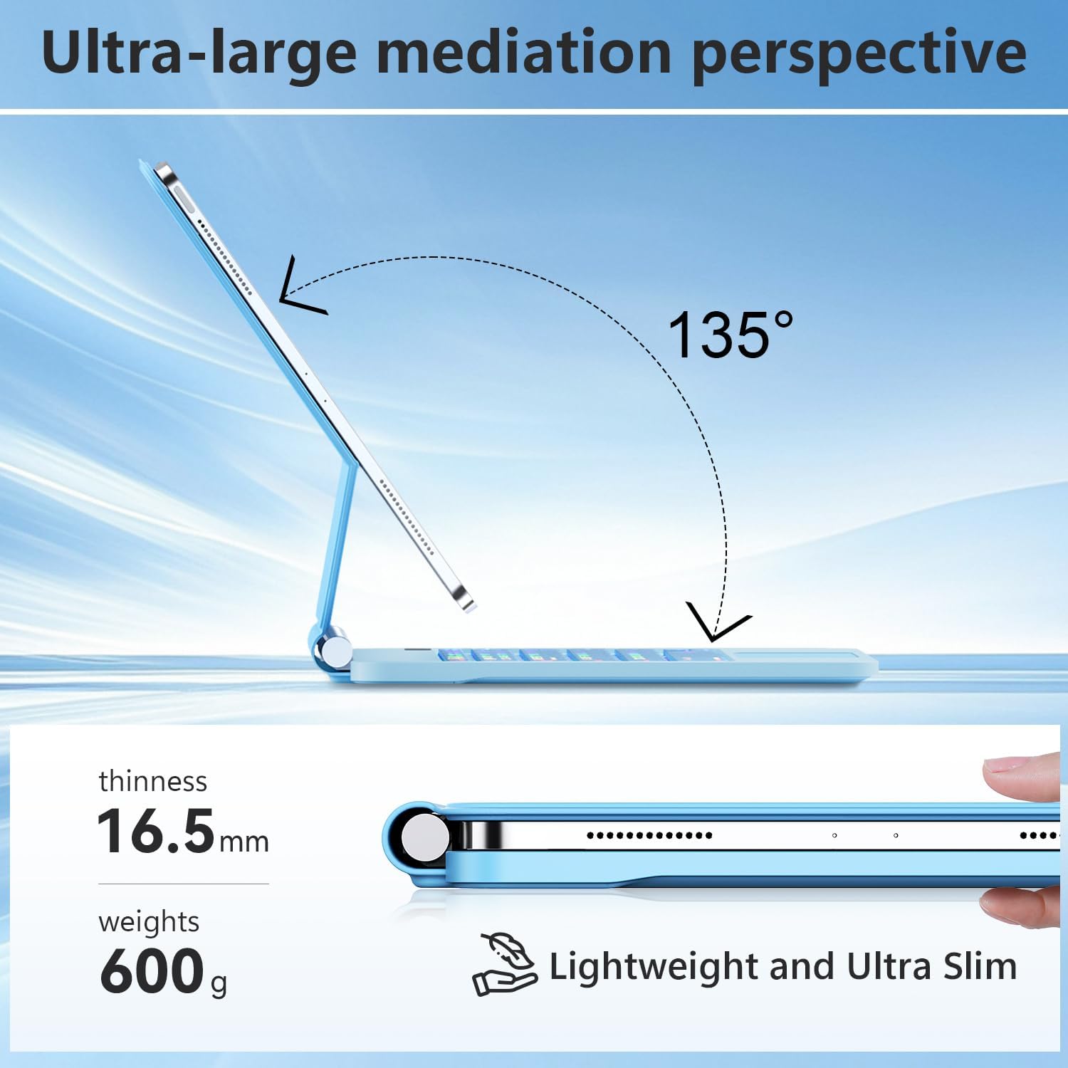 - 7-Color Backlit Keyboard for iPad Air inch (M2) 2024:From dawn to dusk, adapt effortlessly! Adjusting 7 backlight and 3 levels of brightness ensures clear visuals in every setting, enhancing your immersive experience