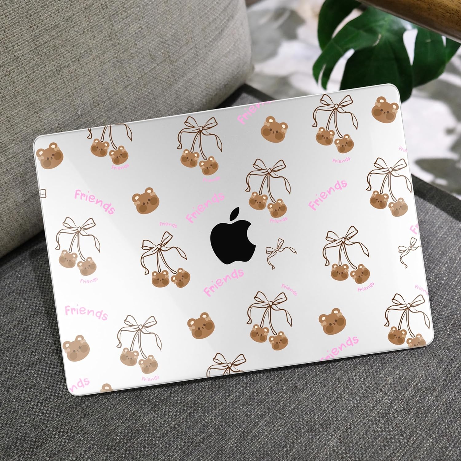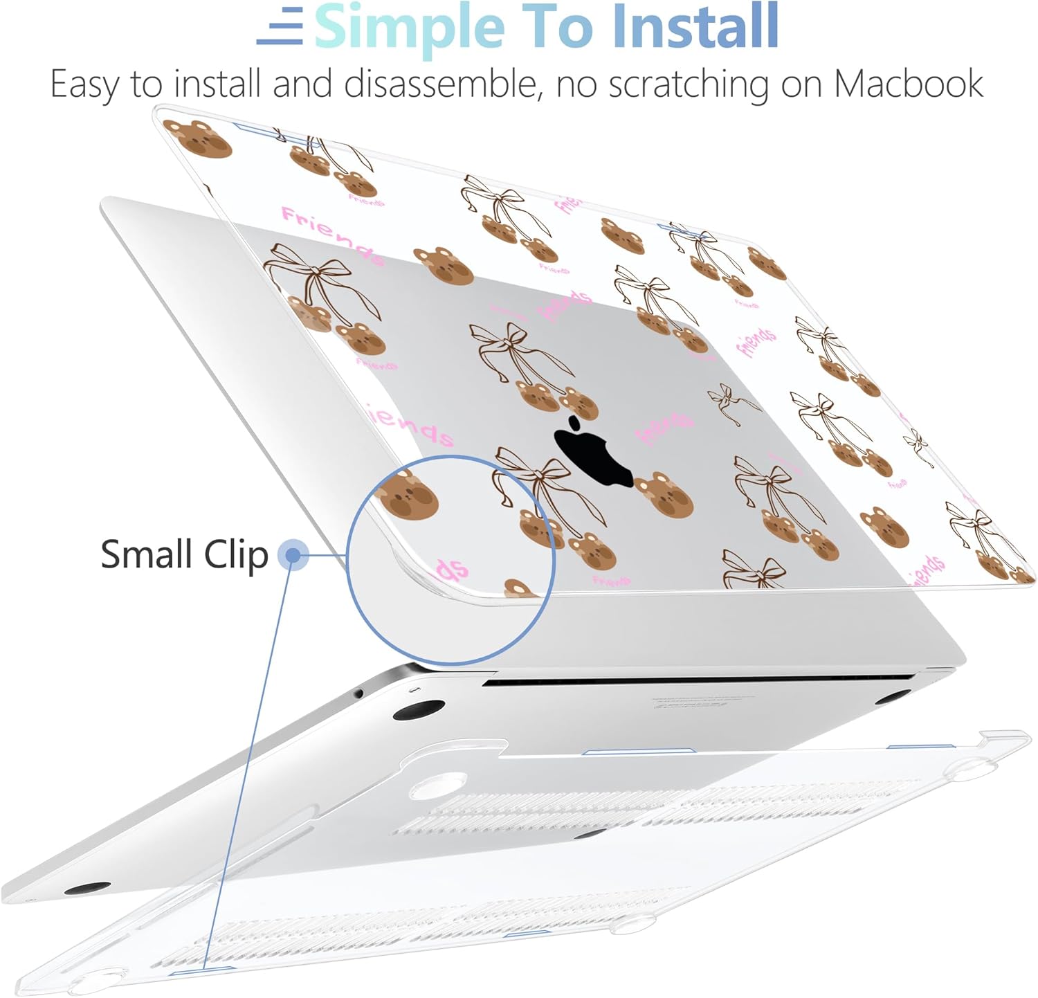 MEEgoodo Case for MacBook Pro 13 inch Case 2022 2021 2020 New A2338 M2/M1 A2251 A2289, Laptop Hard Shell with Keyboard & Camera Cover Compatible with 13 inch MacBook Pro, Teddy Bear & Bows