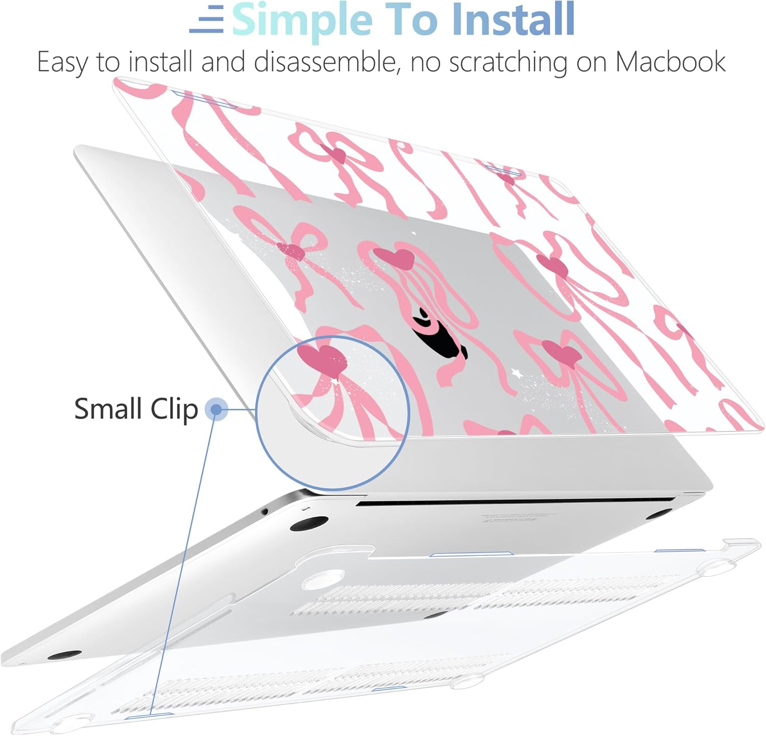 - Design Features of Case: The bottom case is designed with vents for maximum heat dissipation. The bottom case has non-slip feet to avoid slipping during use. The precise cutting design allows you to access all the ports of your MacBook. It is easy to install and remove