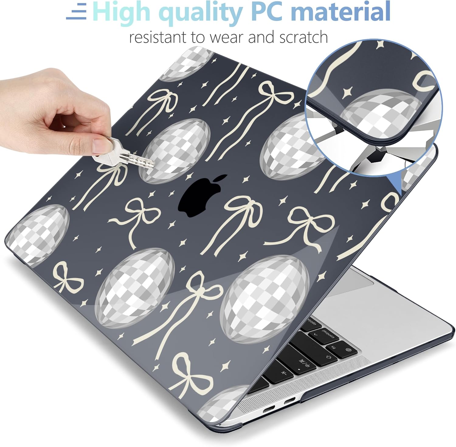 MEEgoodo Case for MacBook Pro 13 inch Case 2022 2021 2020 New A2338 M2/M1 A2251 A2289, Laptop Hard Shell with Keyboard & Camera Cover Compatible with 13 inch MacBook Pro, Silver Disco Balls & Bows