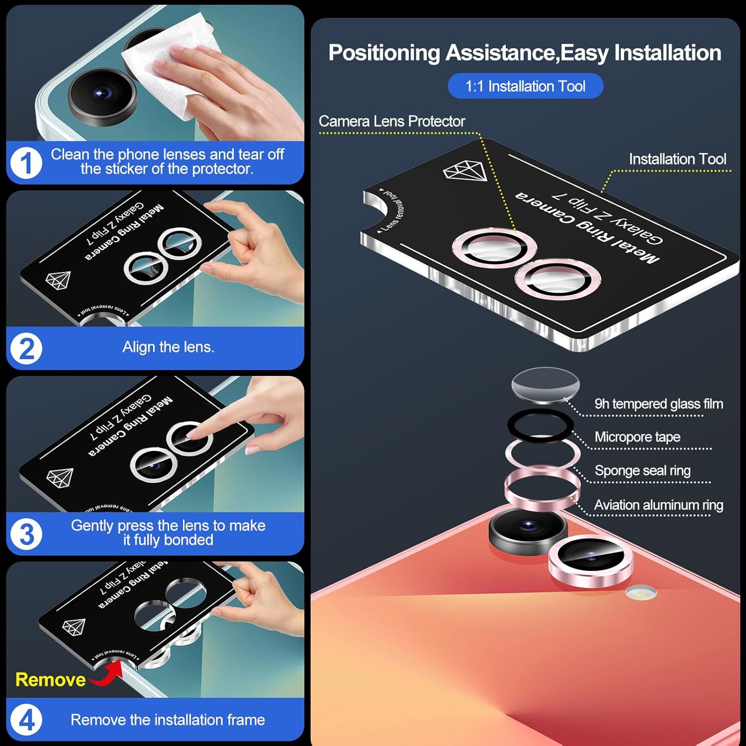 - 【Compatible Model】This ultra-thin camera lens protector only compatible with Samsung Galaxy Z Flip 7. DO NOT FIT other models. Easily fit and match with most phone cases.