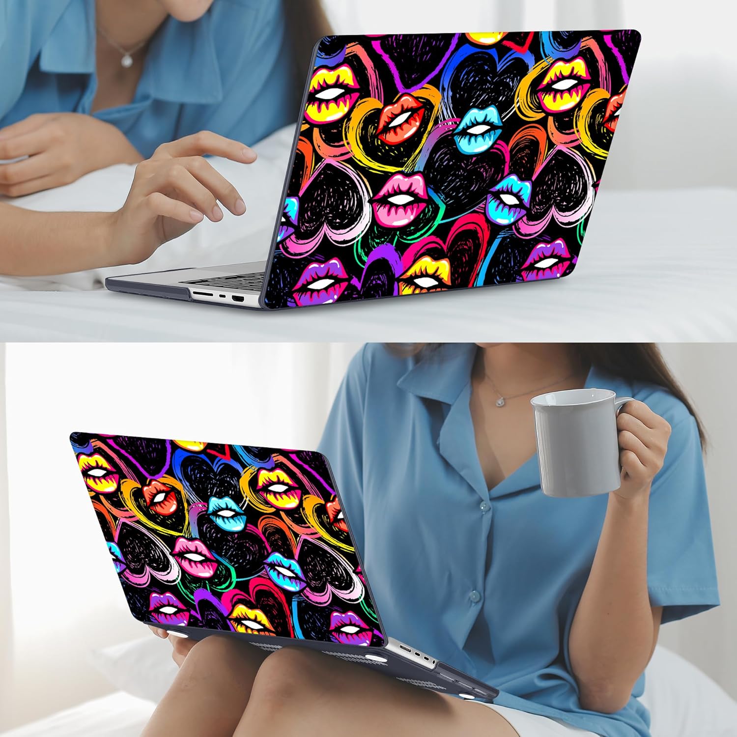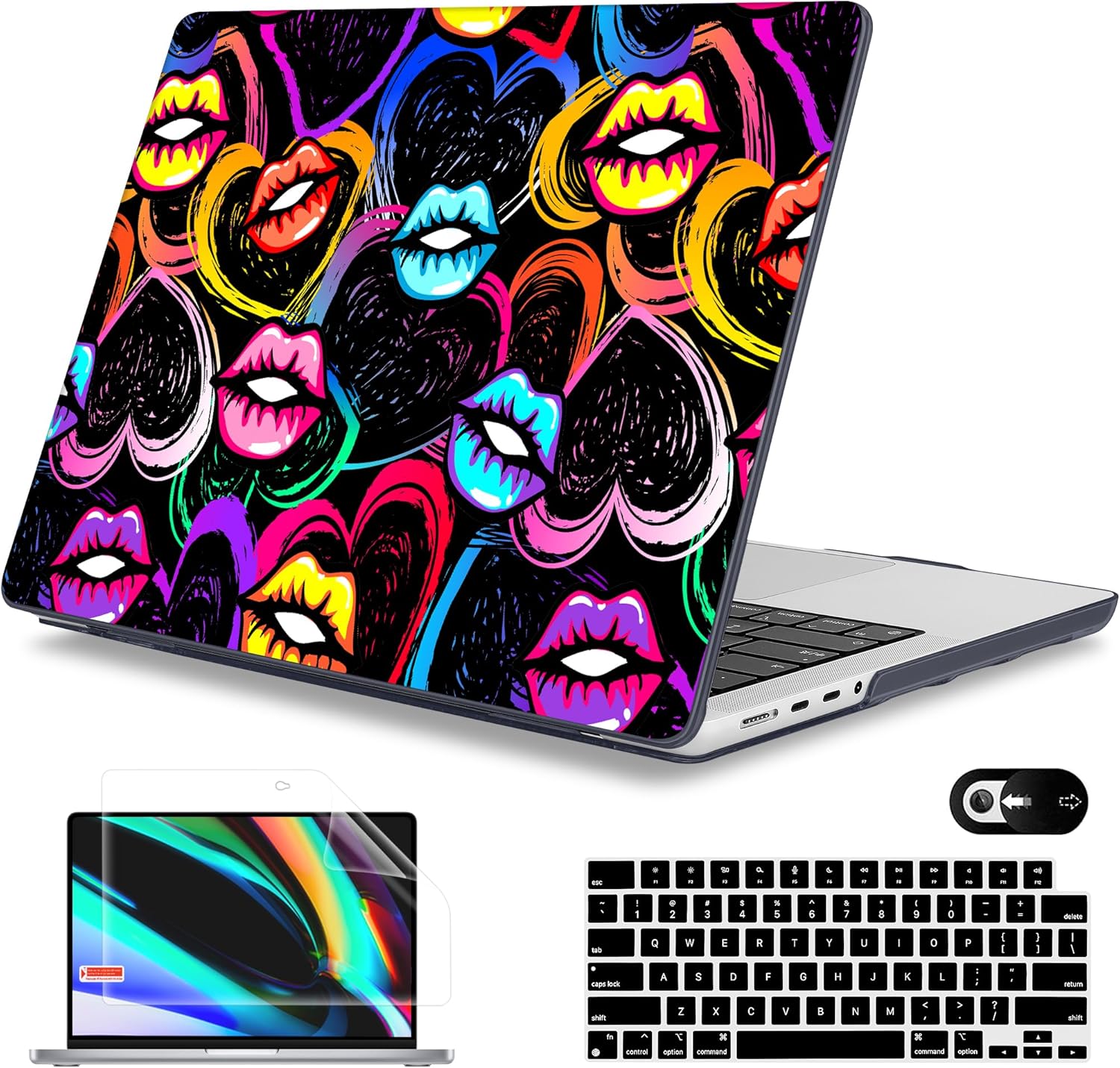 Mektron Case for 2025 MacBook Pro 16" M4 A3403 A3186 M3 A2991 M2 A2780 M1 A2485 (2021/2023/2024) Pro/Max with Touch ID, Hard Shell Plastic Laptop Cover Keyboard Cover Screen Protector, Colorful Lips