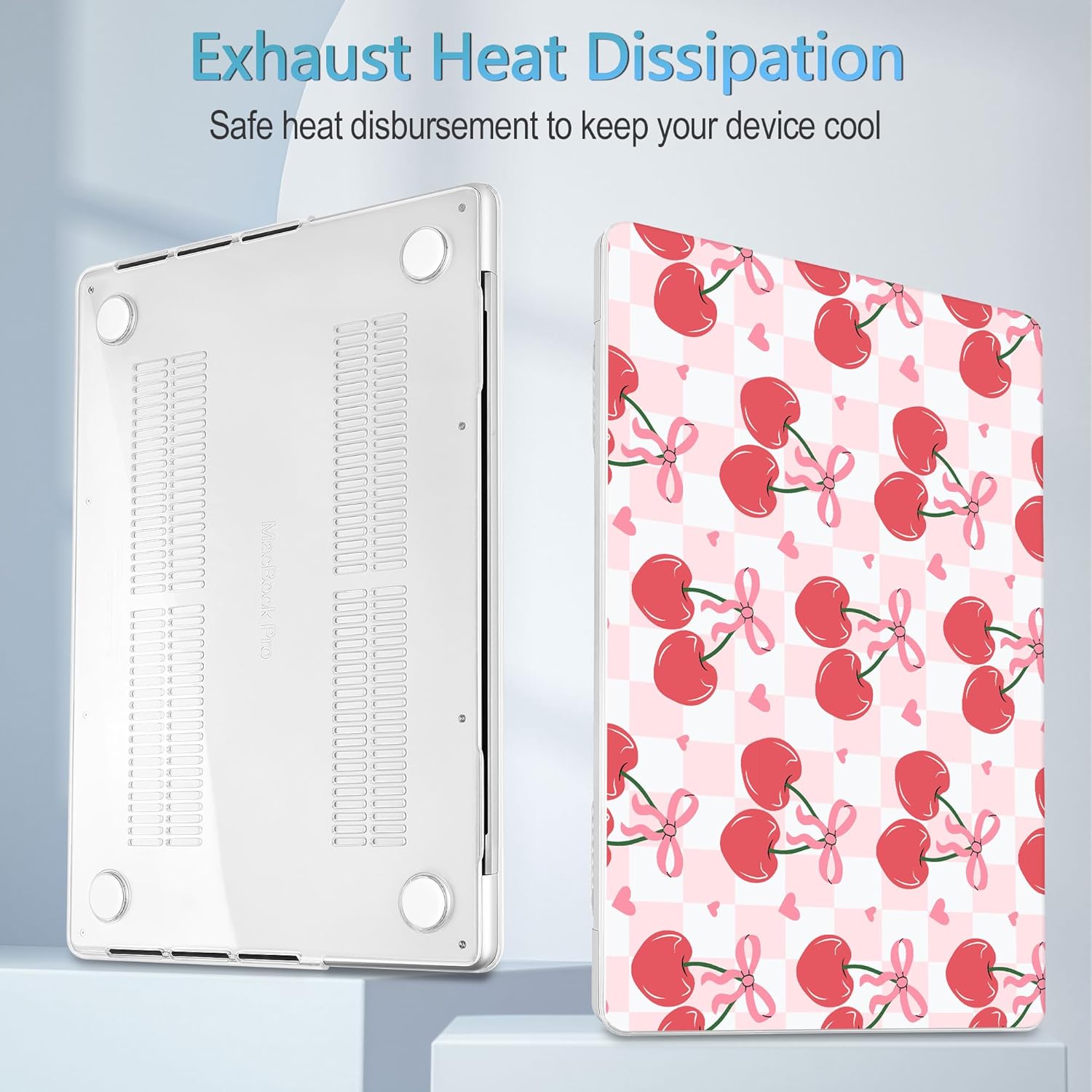 Mektron Case for 2025 MacBook Pro 16" M4 A3403 A3186 M3 A2991 M2 A2780 M1 A2485 (2021/2023/2024) Pro/Max with Touch ID, Hard Shell Plastic Laptop Cover Keyboard Cover, Cherries Bows C353