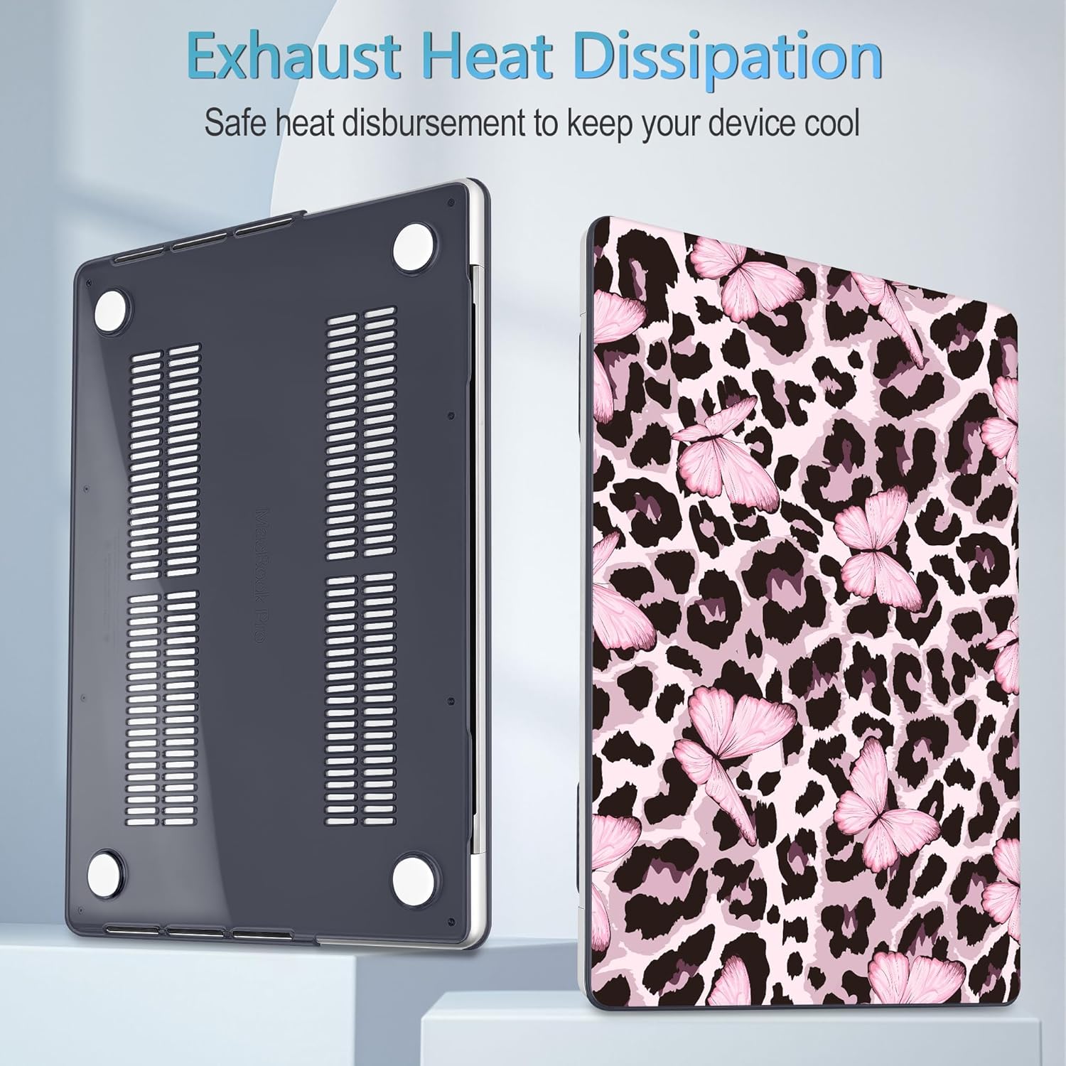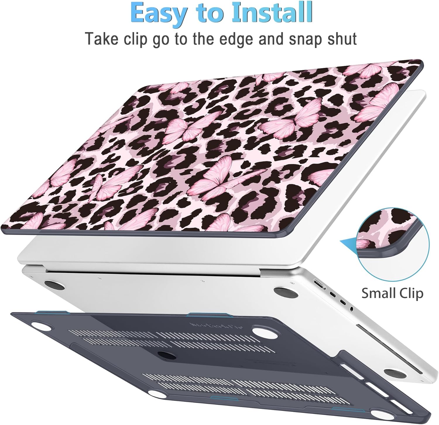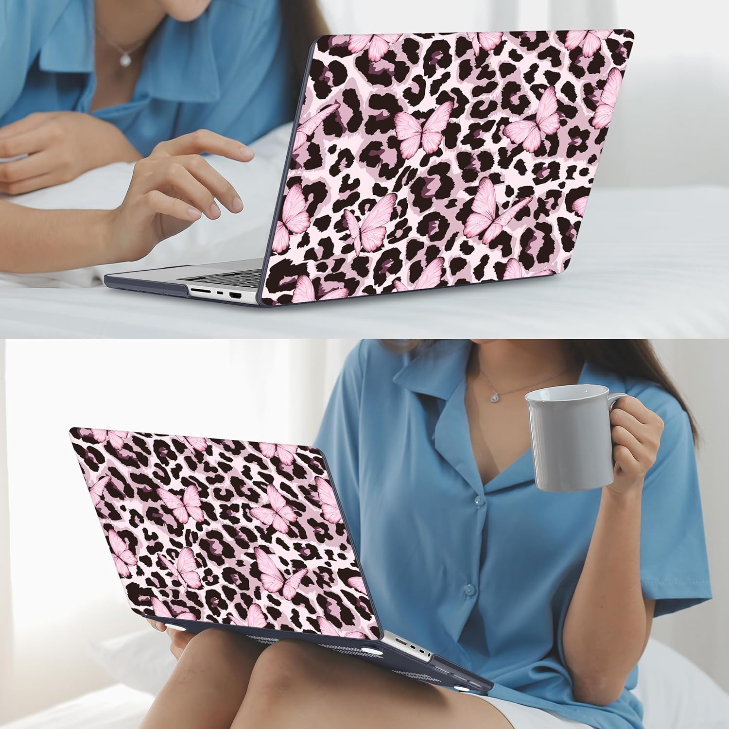 Mektron Case for 2025 MacBook Pro 16" M4 A3403 A3186 M3 A2991 M2 A2780 M1 A2485 (2021/2023/2024) Pro/Max with Touch ID, Hard Shell Plastic Laptop Cover Keyboard Cover, Leopard Pink Butterfly
