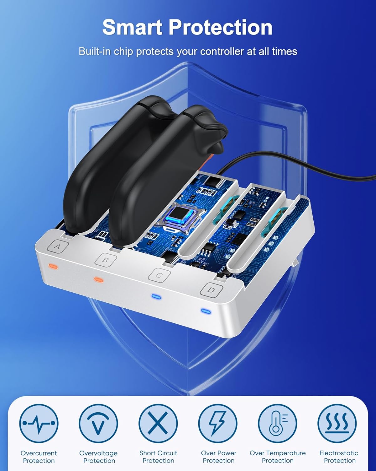 - Controller Charging Protection: The charging station both for Joy con 2 and for Joycon 1 controller built-in advanced safety charging protection ,overcharge, overcurrent, and short-circuit protection safeguards your controllers. charging indicators lights (orange=charging, blue=fully charged/standby) let you check status at a glance.Seamlessly switching charging between switch 2 and switch controller, ideal for multi-device gamers