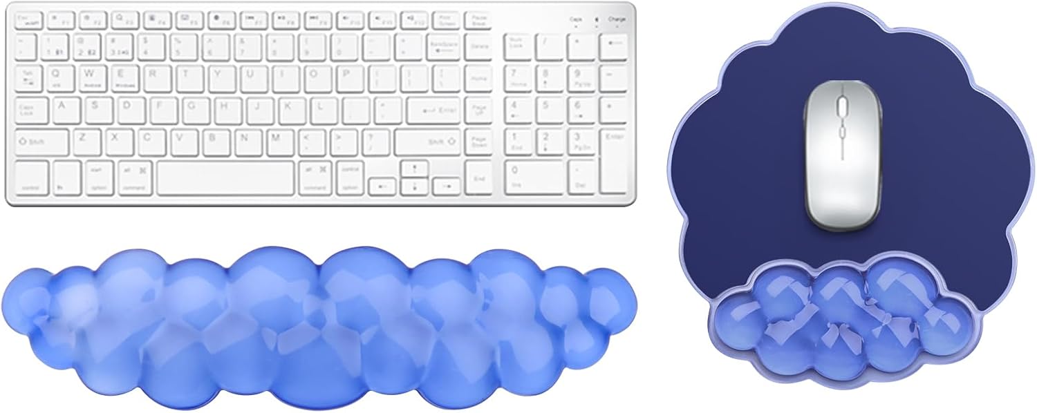 - 【Comfortable Cloud Wrist Rest Set】This cute and soft cloud keyboard and mouse pad with wrist rest support ,perfectly fits your wrist. The bubble cloud shaped design and soft cushioning provide much-needed comfort during prolonged typing, helping to treat and prevent carpal tunnel syndrome.