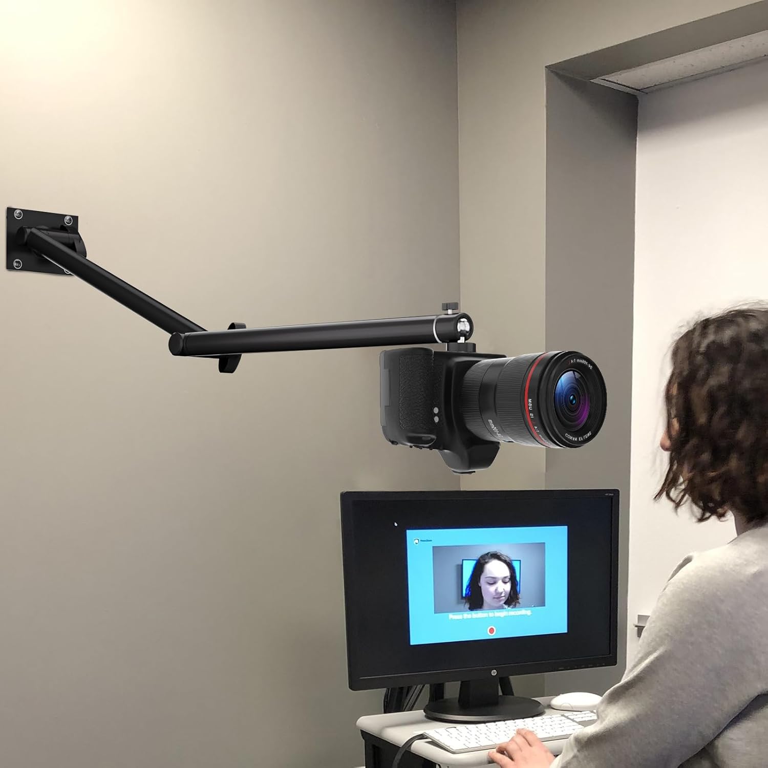 Articulating Camera Wall Moun with 1/4"-20 Threaded Compatible with DSLR/Security/Webcam/Action/LED Light/CCTV POV Camcorder Cameras,Adjustable Aluminium Alloy Arm Metal Base