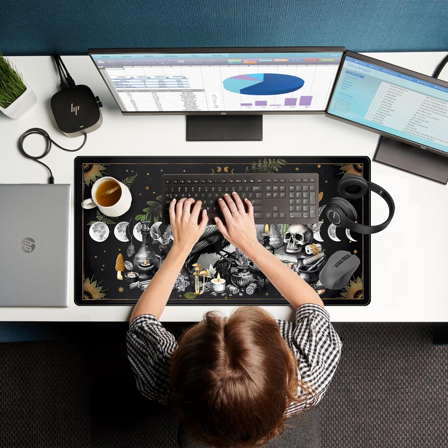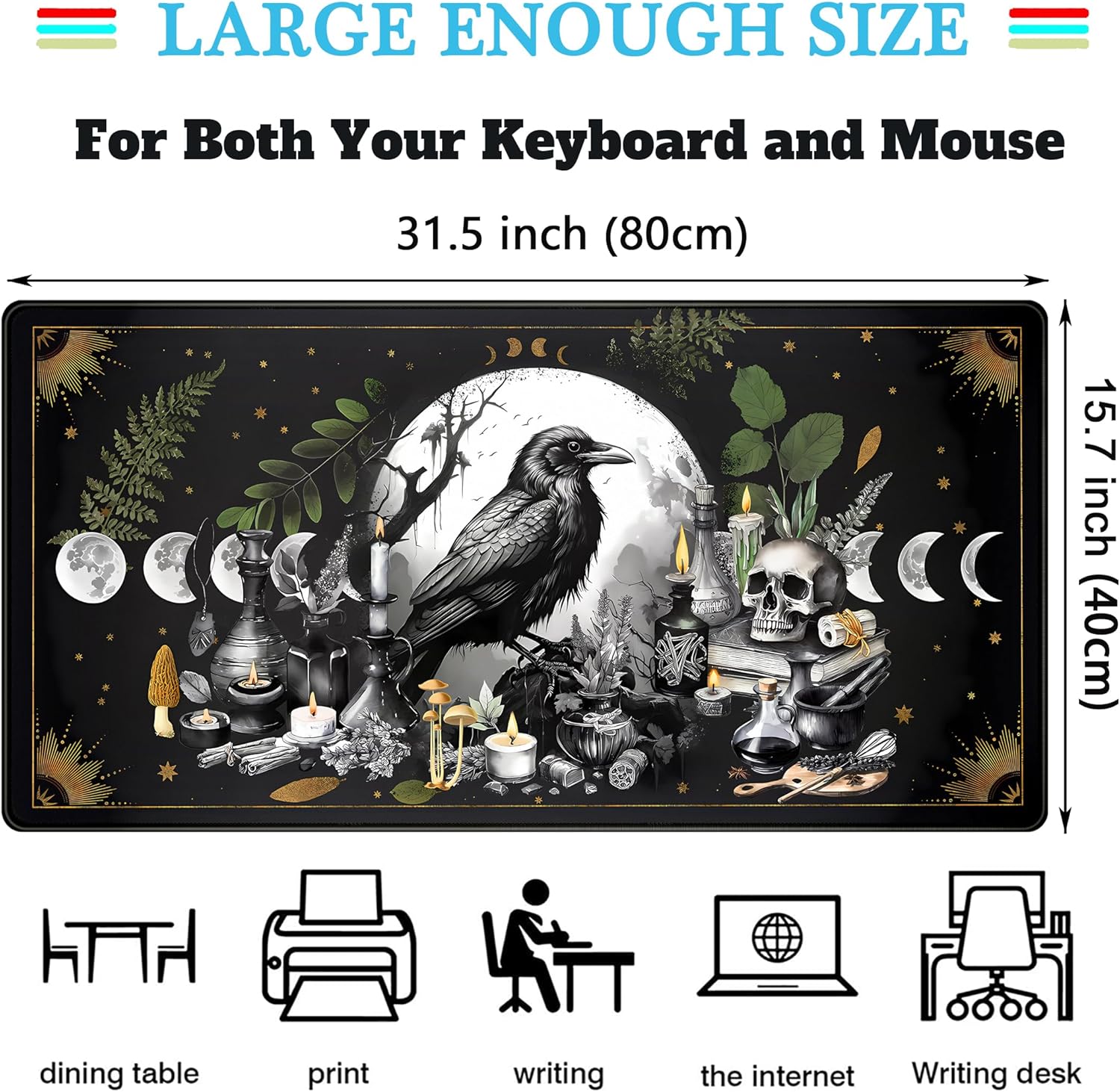 Cute Kawaii Raven Desk Mat XXL Large Extended Gaming Mouse Pad Nature Forest Gothic Mousepad with Stitched Edges, Anime Skull Laptop Keyboard and Mouse Mat Desk Pad for Work Game 31.5x15.7 in