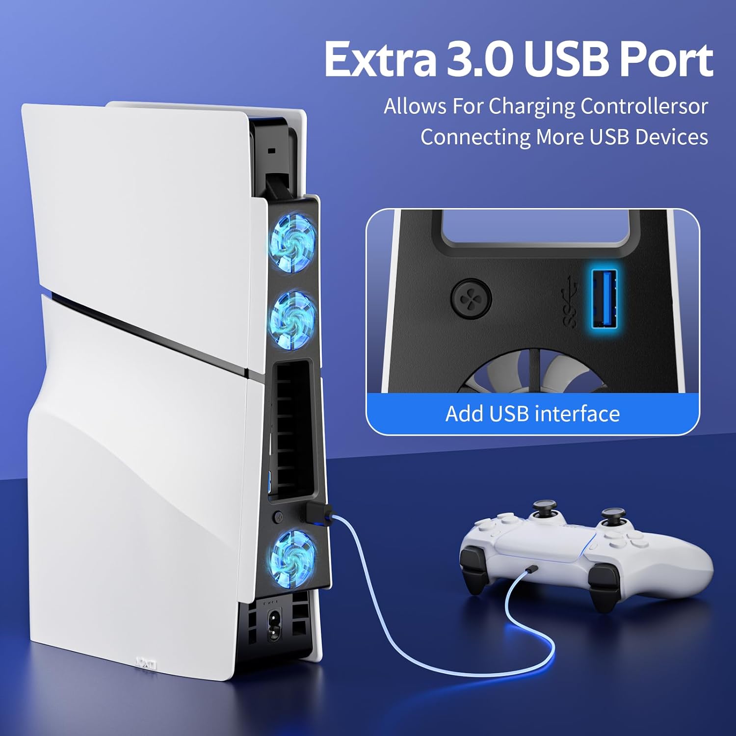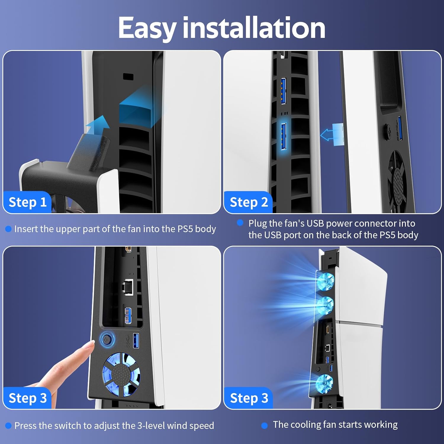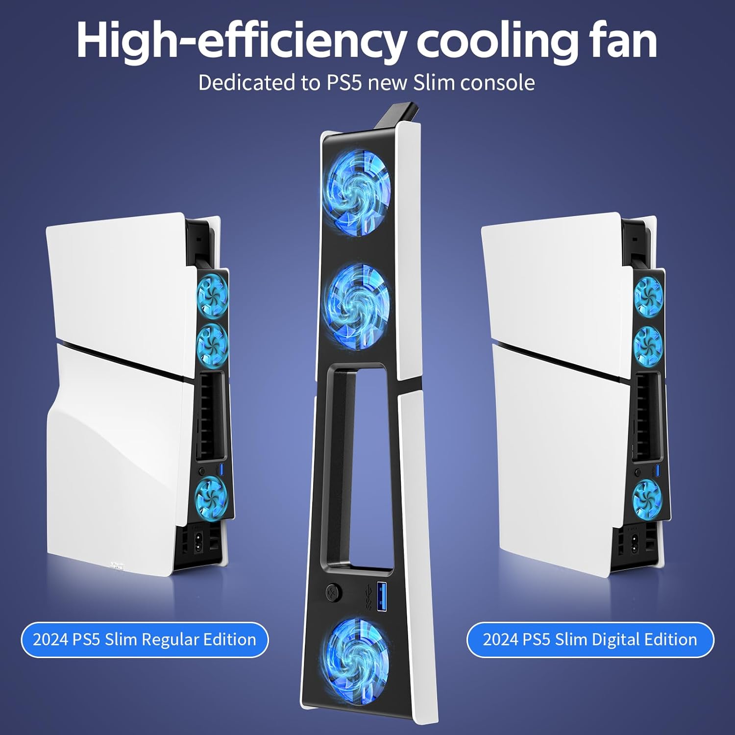 - 【Three Fans, Efficient Cooling】- A powerful triple-fan cooling system designed specifically for the PS5 Slim, rapidly dissipating internal heat buildup. Effectively prevents overheating and throttling, ensuring full gaming performance and extending console lifespan. Note: Compatible with PS5 Slim only.