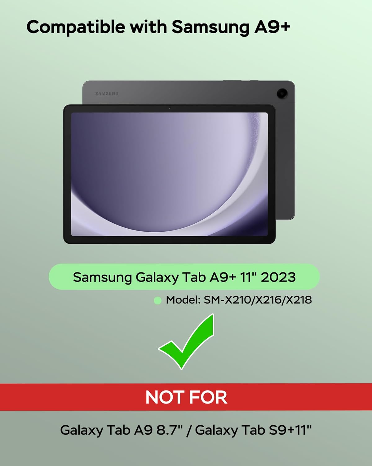 - [Compatibility Model] This keyboard case is designed exclusively for Samsung Galaxy Tab A9 Plus/A9+ 11 inch 2023 Release tablet Model (SM-X210, SM-X215, SM-X216B). Please verify your model number in Settings before purchase.