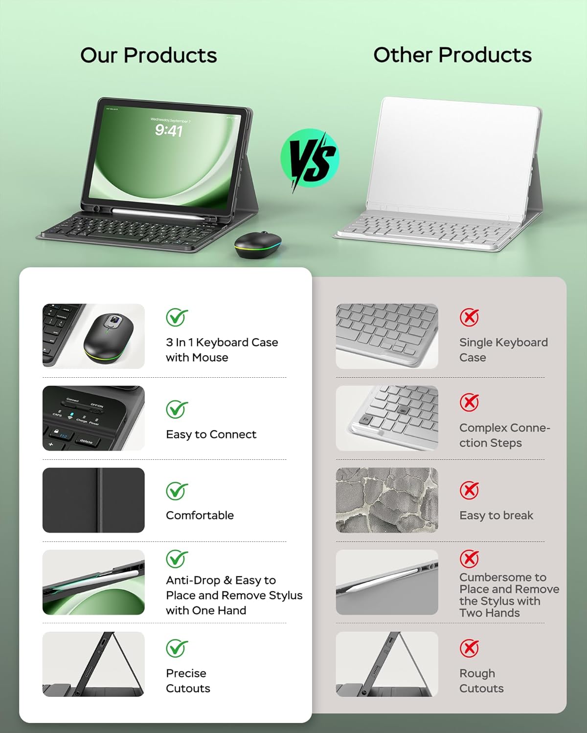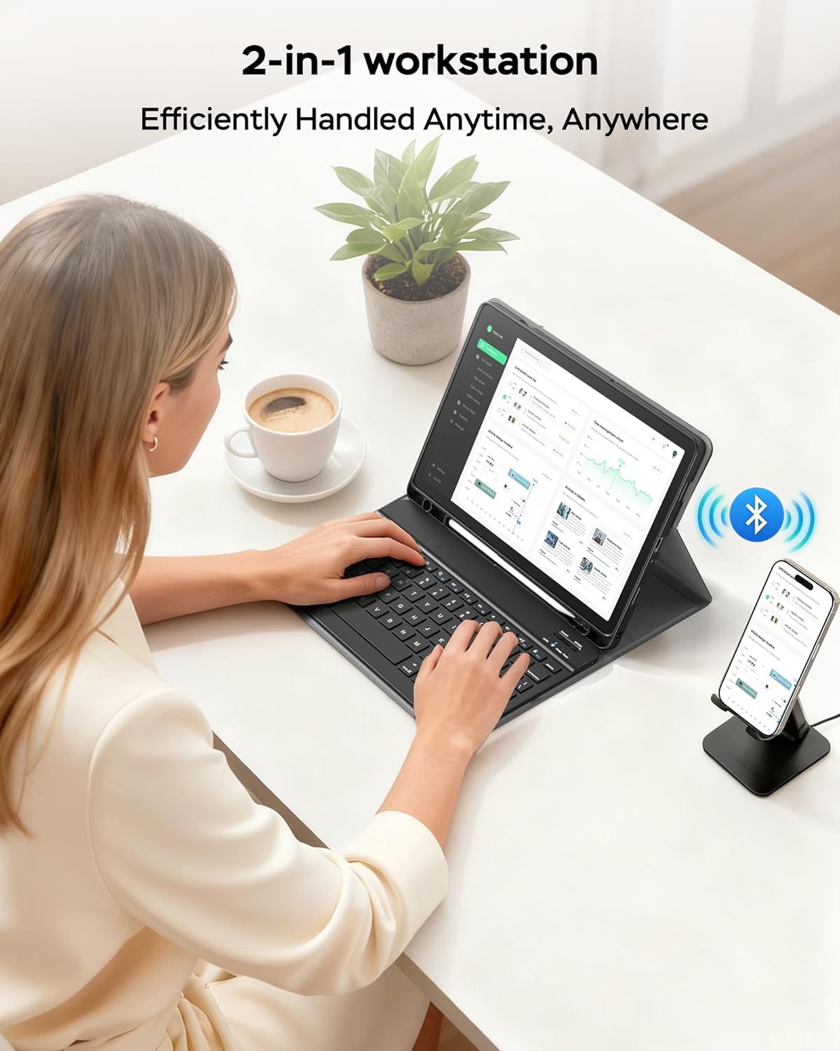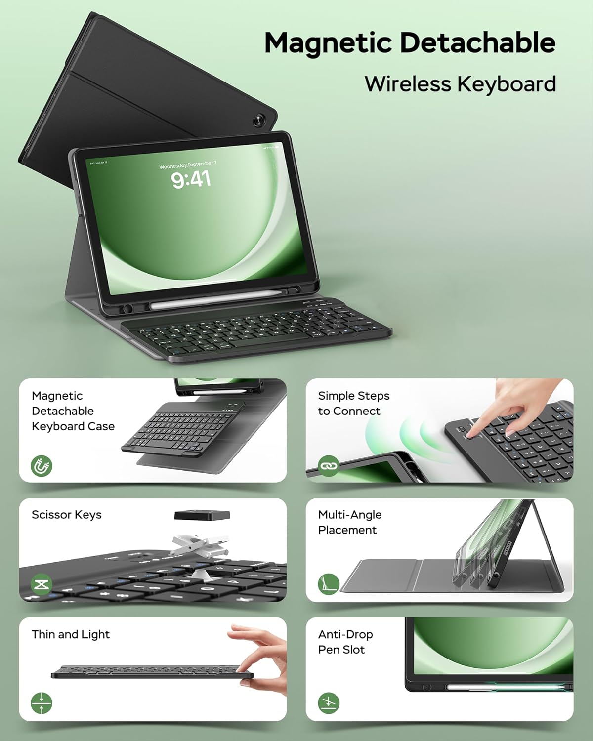 - [Detachable Magnetic Keyboard & Multi-Angle Viewing] The ultra-slim Bluetooth keyboard detaches magnetically and connects seamlessly to Android, iOS, and Windows systems. This case stand with 3 adjustable angles offers comfortable viewing and typing in cafes, classrooms, or on the go. Ideal for office professionals, students, and travelers.