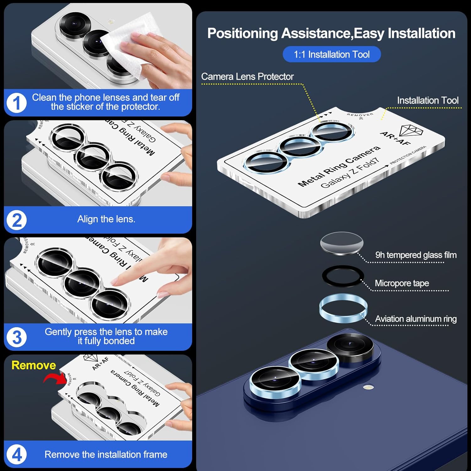 - 【Compatible Model】This ultra-thin camera lens protector only compatible with Samsung Galaxy Z Fold 7. DO NOT FIT other models. Easily fit and match with most phone cases.
