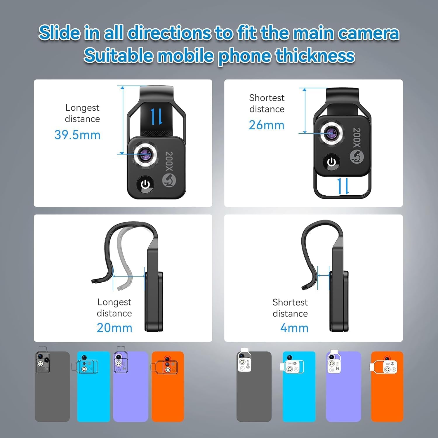 - 📱【Widely Compatible】This mini smartphone microscope features a minimalist phone clip design, compatible with almost all smartphones, as iPhone, Samsung, Google, Xiaomi, OnePlus and more. If you have an iPhone 13 and newer and Samsung Galaxy S22 S23 Ultra, disable the camera's macro feature before use. (This lens is not intended to magnify distant objects.)
