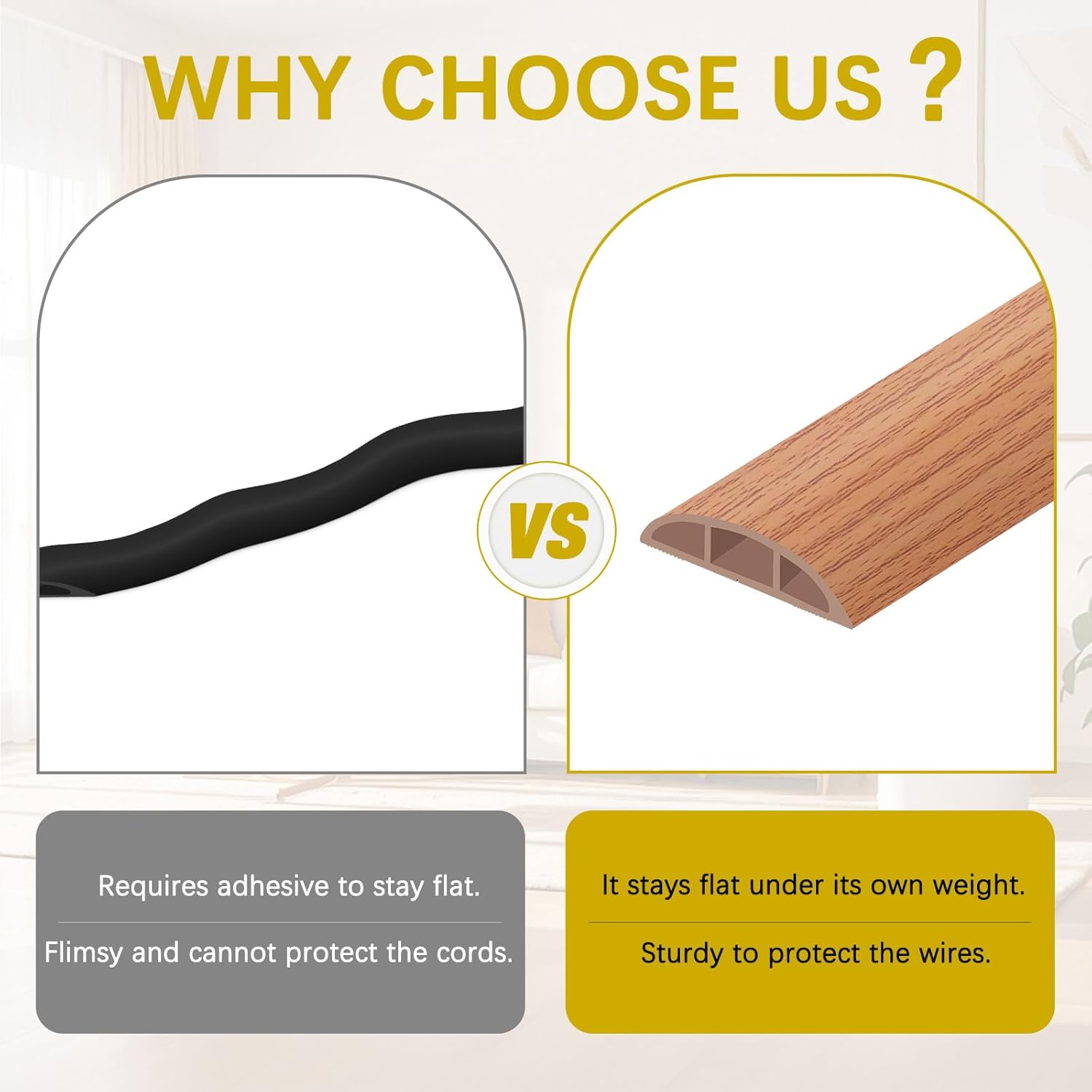 - 【Protect Cables】Floor cable cover is ideal for hiding cables, wires and cords such as TV cables, lighting fixtures and extension cords. It effectively prevents cables, wires and cords from being exposed to the outside world and extends their service life. It also protects cables from pet bites and scratches